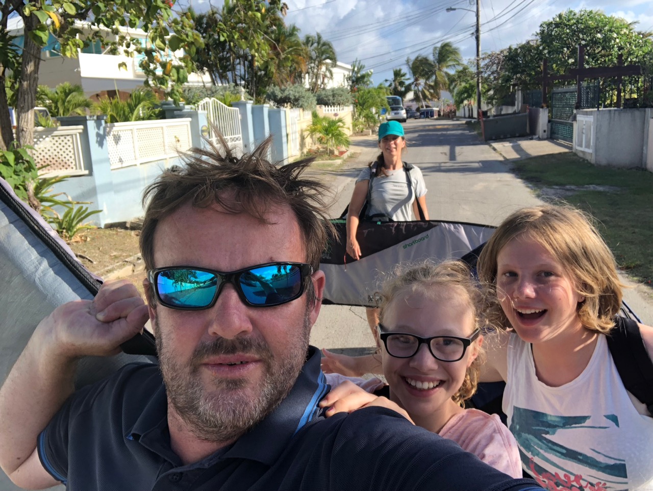 At first, we were sorted. Our friends from S/Y Sago, Geoff and Silke who had also just arrived, had their own car through Geoff’s work. We struck a sweet deal. Their daughter Annika came to Quest under my supervision to hang with Delphine while Lulu and Jack took two available spaces in their car. For a few, wonderful expeditions, they drove down to one of the best surfing beaches, Freight’s Bay at the tip of the south coast. They came back to Quest in the evenings for dinner and told us about the long rides. The surfing turtles. We even celebrated the fish festival together in Oistins in a shady bus-stop style. It was awesome, friends together in Barbados.
