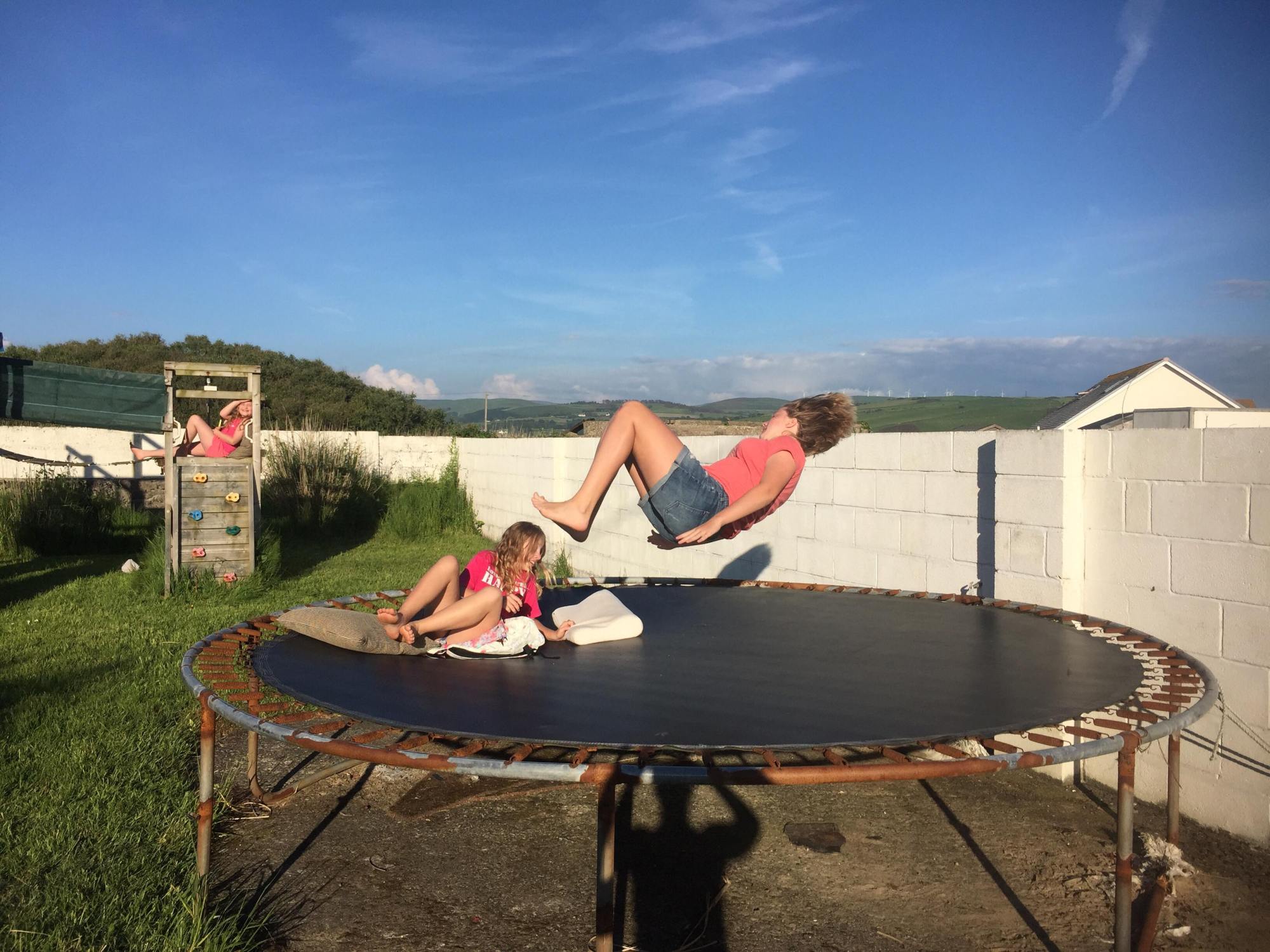 She rolled her eyes. ‘You’ll find me on the trampoline.’ Bang went the front door.