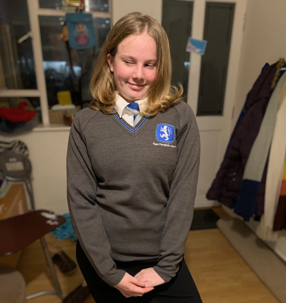 Lulu’s grin was tropical, even if the setting wasn’t. She danced around our Borth kitchen in her new school uniform.