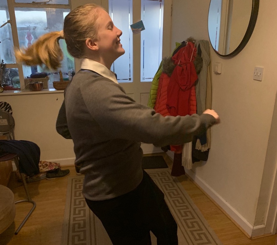 She came back into the kitchen after she’d brushed her teeth. Voulez-vous by Abba was on the radio. She cracked a couple of dance moves. I got the camera out and filmed her dancing in her school uniform for twenty seconds or so. She was laughing nervously. It came out like a determined happiness. Voulez-vous, aha – throw a shape – aha, Voulez-vous.