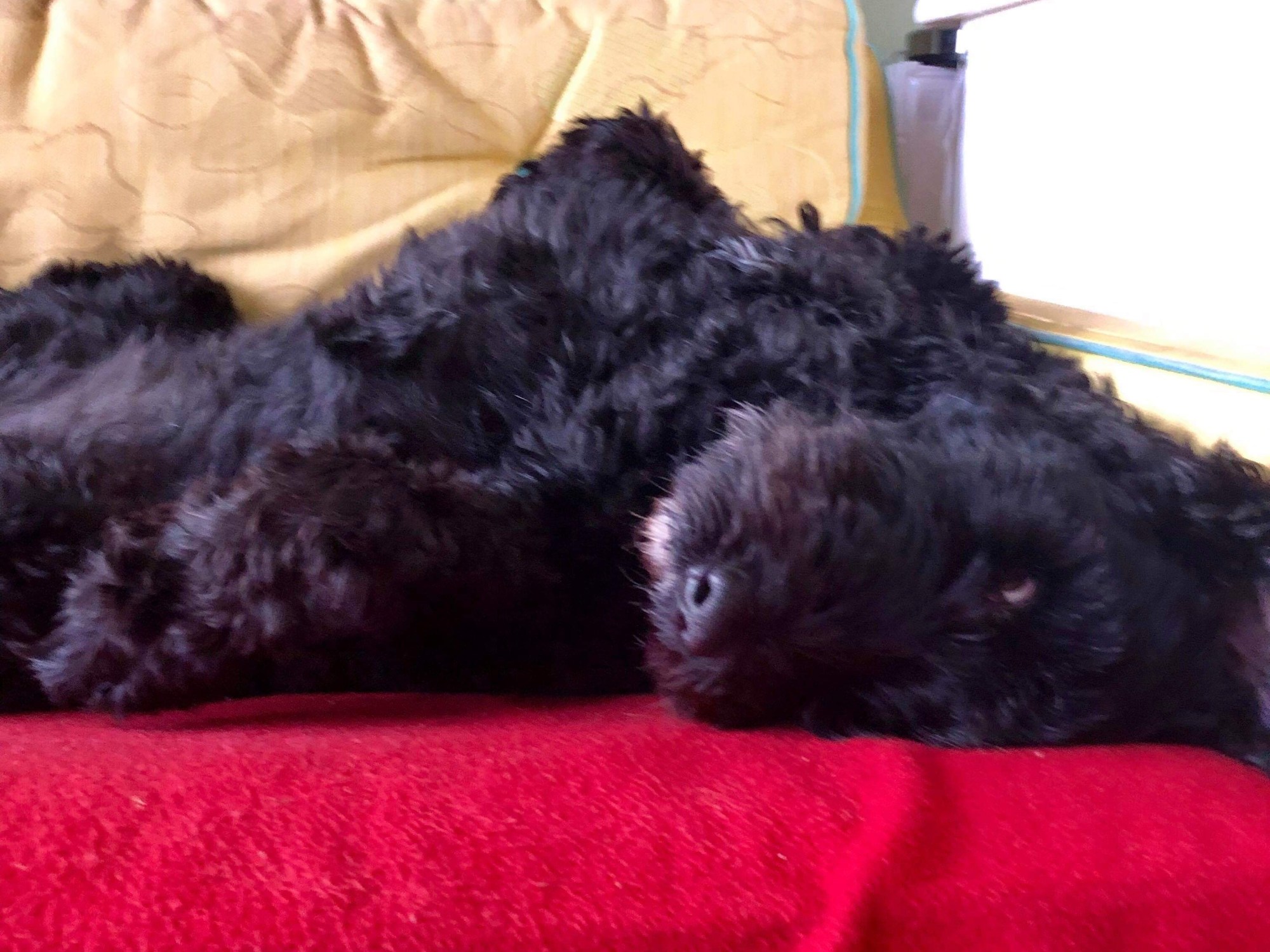 Fin had a Pekingese dog in her mouth this morning. Vronnie took her for a walk. Vronnie is Jack’s step mum. And a wonderful walker of Finster while the rest of us are in bed. Embarrassing but true.
