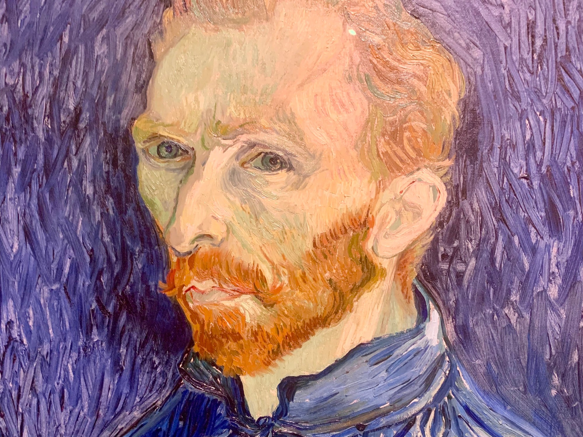 Krystian and I stare at his last self-portrait. Vincent’s super-skinny by this point, good ear visible while the cut ear pointedly isn’t. His skin is yellowish, framed by bright blue, short-stroking background.