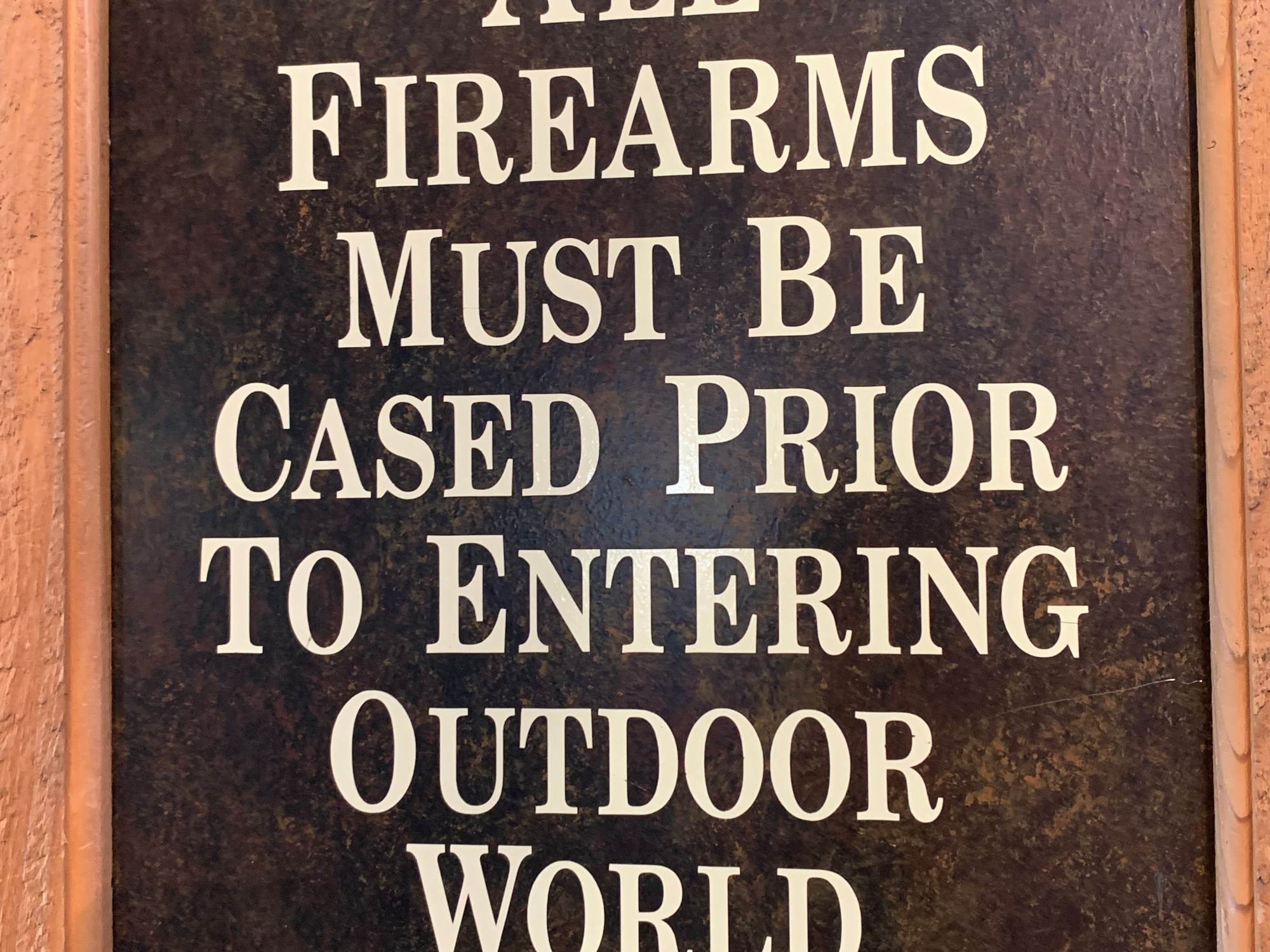 I wanted to buy some turtle cushions for Quest’s cockpit. We’d seen them on the way to London and I swore we’d return. Plus, I really like the sign that tells the customers to case their guns at the counter. At least just while you go in and buy more guns.