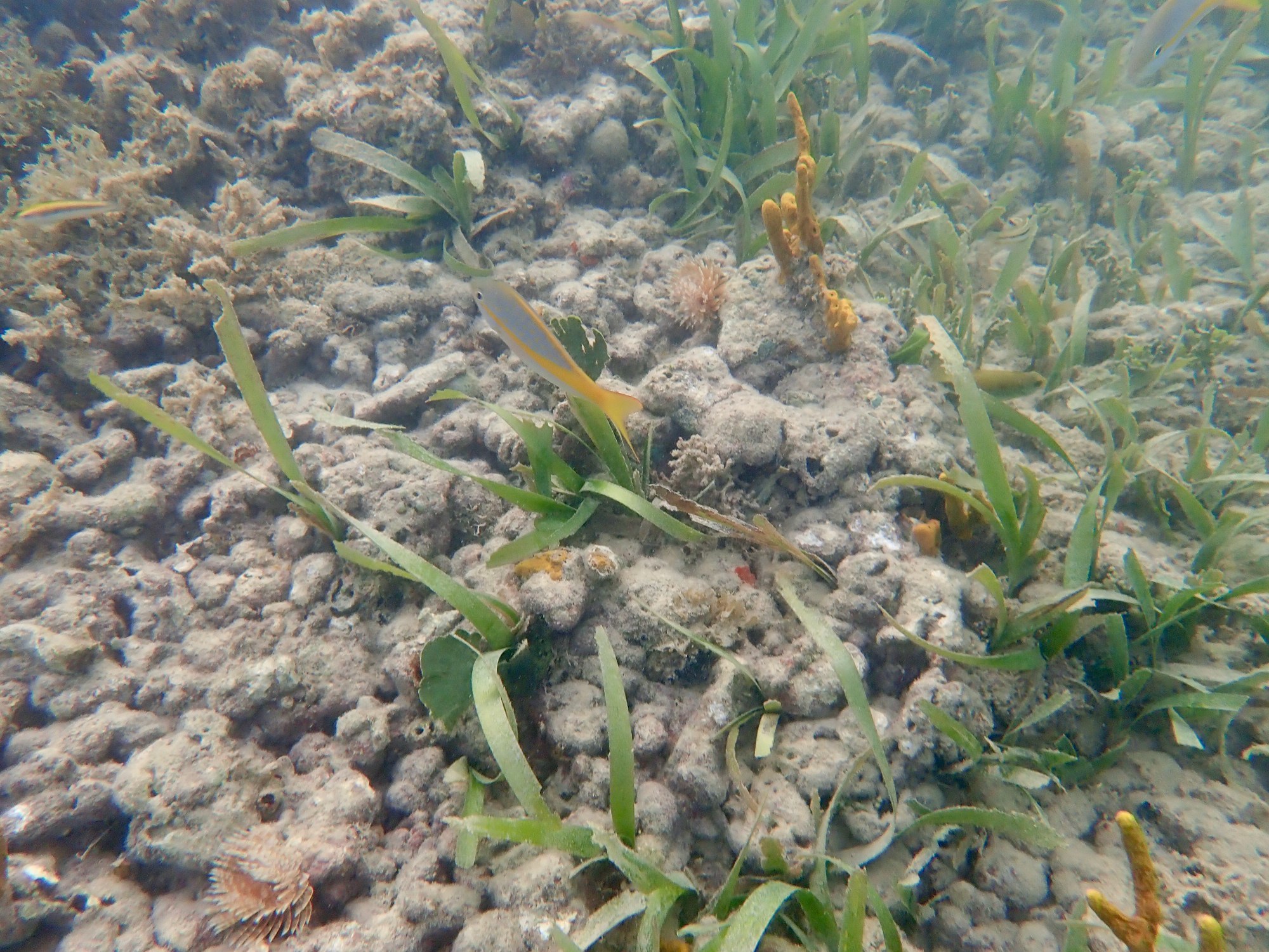I kayaked along the side of Prickly Bay today, in the middle of a seagrass bed. I could see coral beds through the water. We’ve got to come back, I thought. And after school, we did. Snorkels and masks in hand.