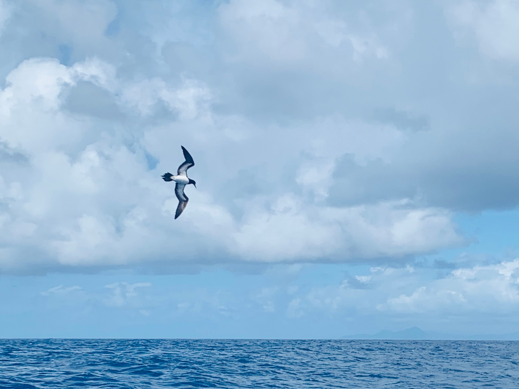 We had company too. Almost all the way through the channel were the bountiful brown boobies. Using Quest’s knack of disturbing surface-dwelling flying fish, the boobies dived and twisted, hurling themselves into the liquid sea. They soared back up with pin-point accuracy around Quest’s bouncing sails.