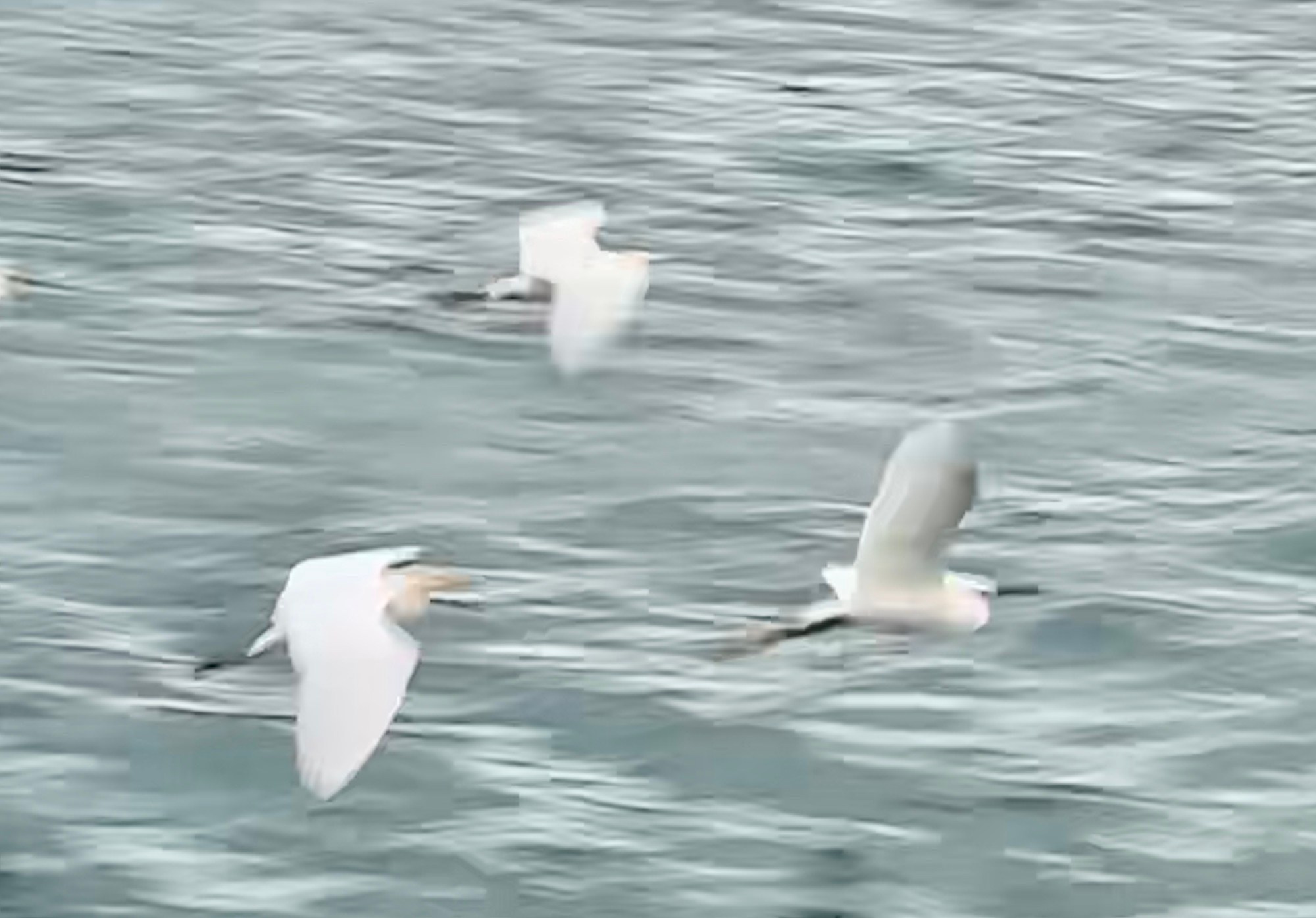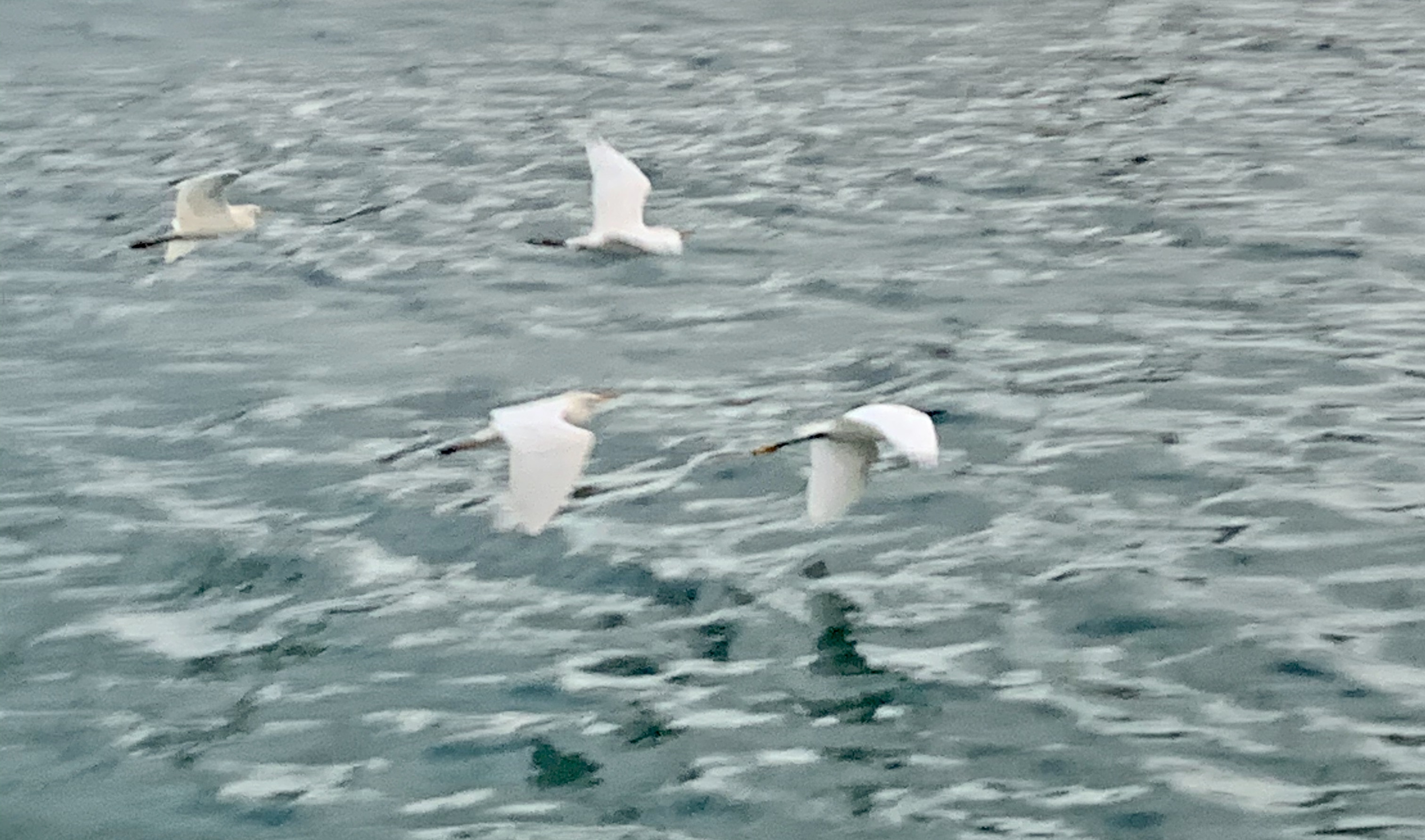 So, here it is. I’m trying to get a picture of this wolf moon – before it disappears behind the horizon. Unlikely. There’s a big bank of clouds blocking our wolf moon. We’ve had a return of Christmas winds, although I think now they should be called January winds. We’ll definitely be attached to this buoy for the next few days. Oh, there’s a flock of birds. That’ll do.