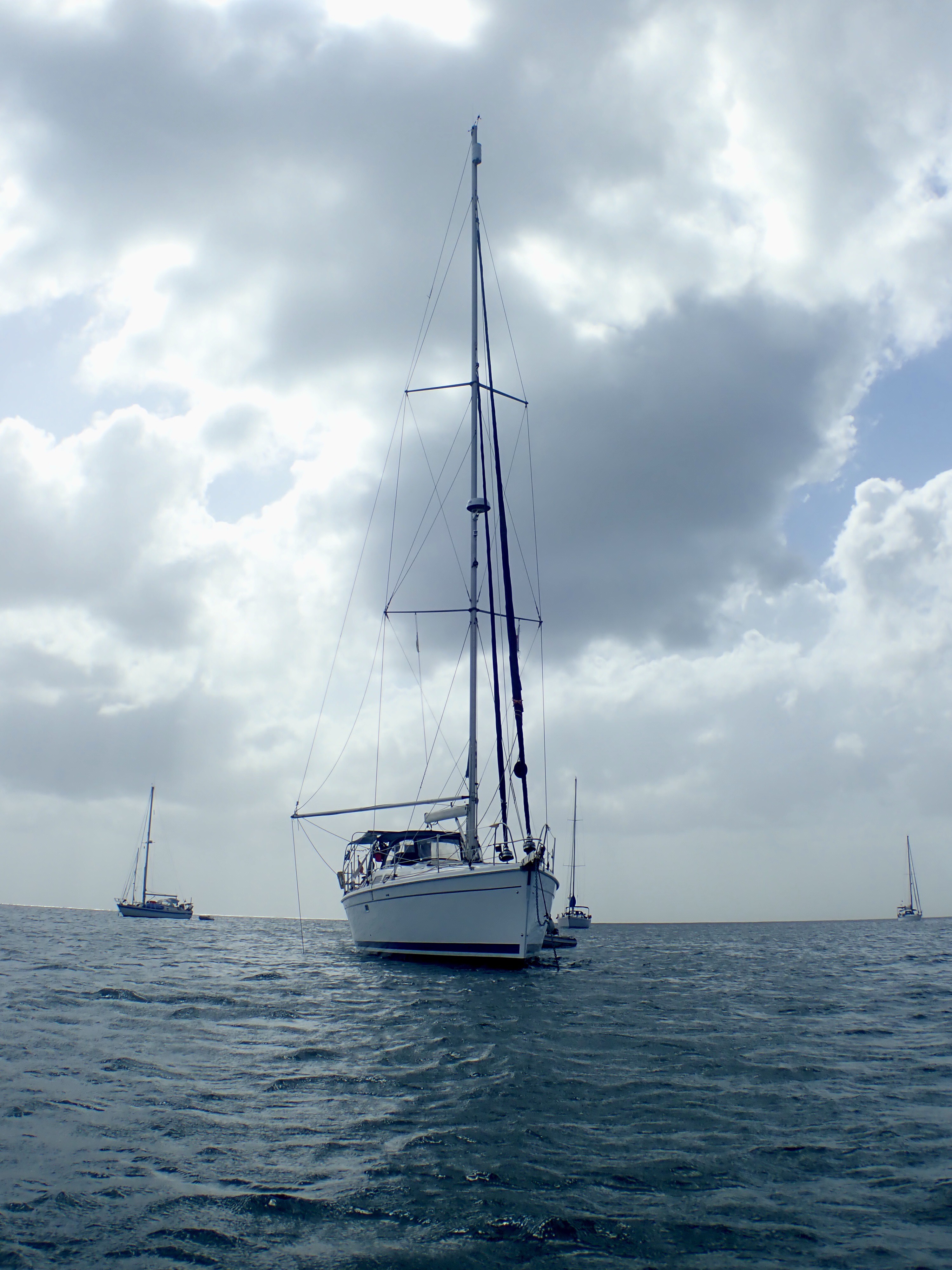 Having another family boat in this anchorage definitely helps define what we must look like. I keep staring at them and thinking, ‘So that’s what we look like.’ Very profound. They must be thinking, ‘Why does she keep staring at us?’