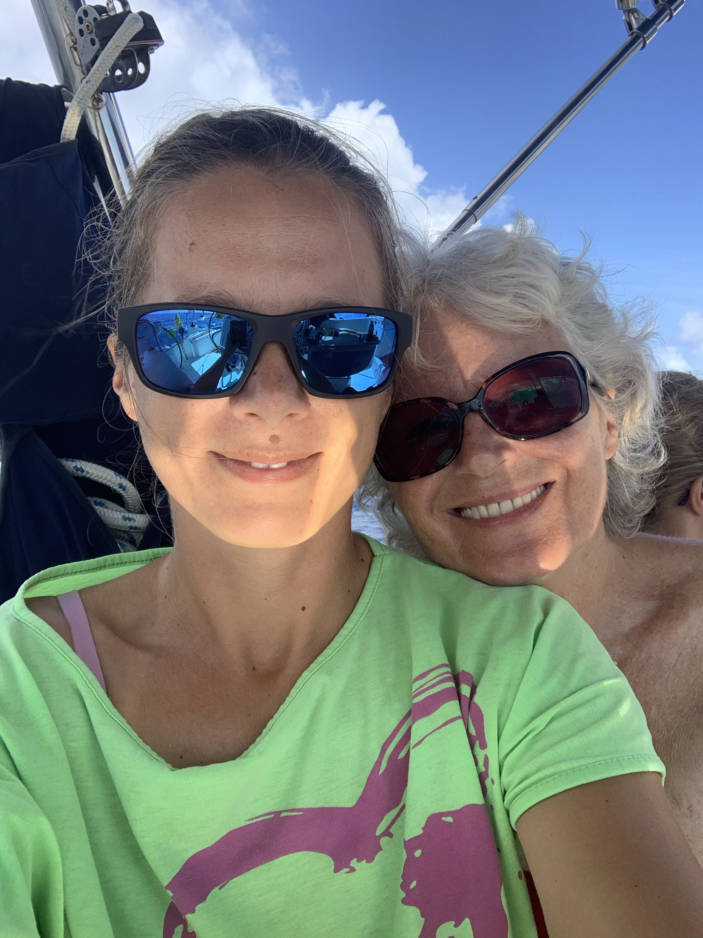 I could have sat and wrung my hands. I felt like tying my mum up to the bed. What’s wrong with being tied for a few months? She’d likely be safe then. But life is for living – so we went sailing instead. We rounded the north, scrubby coastline of Barbados and headed out into open sea. The water went indigo.