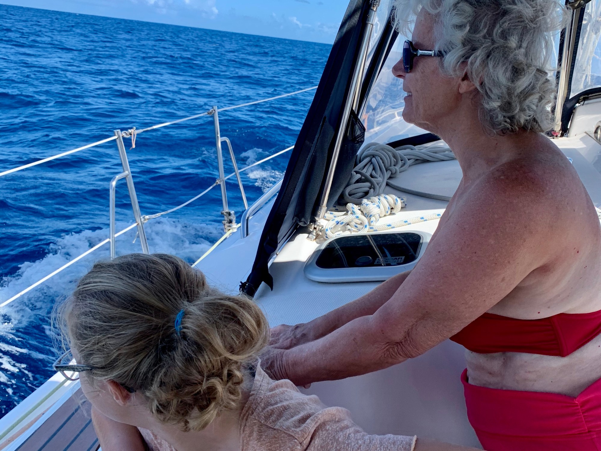 I could have sat and wrung my hands. I felt like tying my mum up to the bed. What’s wrong with being tied for a few months? She’d likely be safe then. But life is for living – so we went sailing instead. We rounded the north, scrubby coastline of Barbados and headed out into open sea. The water went indigo.