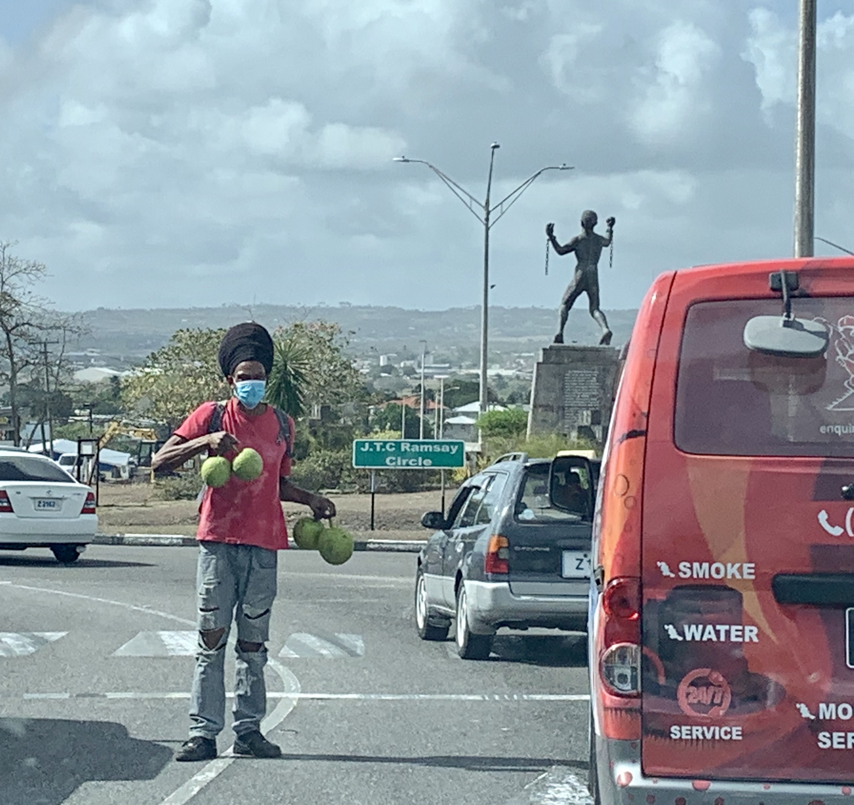 Then it hit us. The sadness. This place feels sad. Each small, concrete-blocked house revealing rows of similar streets, empty of people. Only a few fruit vendors stand by the side of the road. A man sold breadfruit opposite the statue of the emancipation of slavery. Bajans call the statue Bussa, the name of a slave who helped inspire a revolt against slavery in Barbados in 1816.