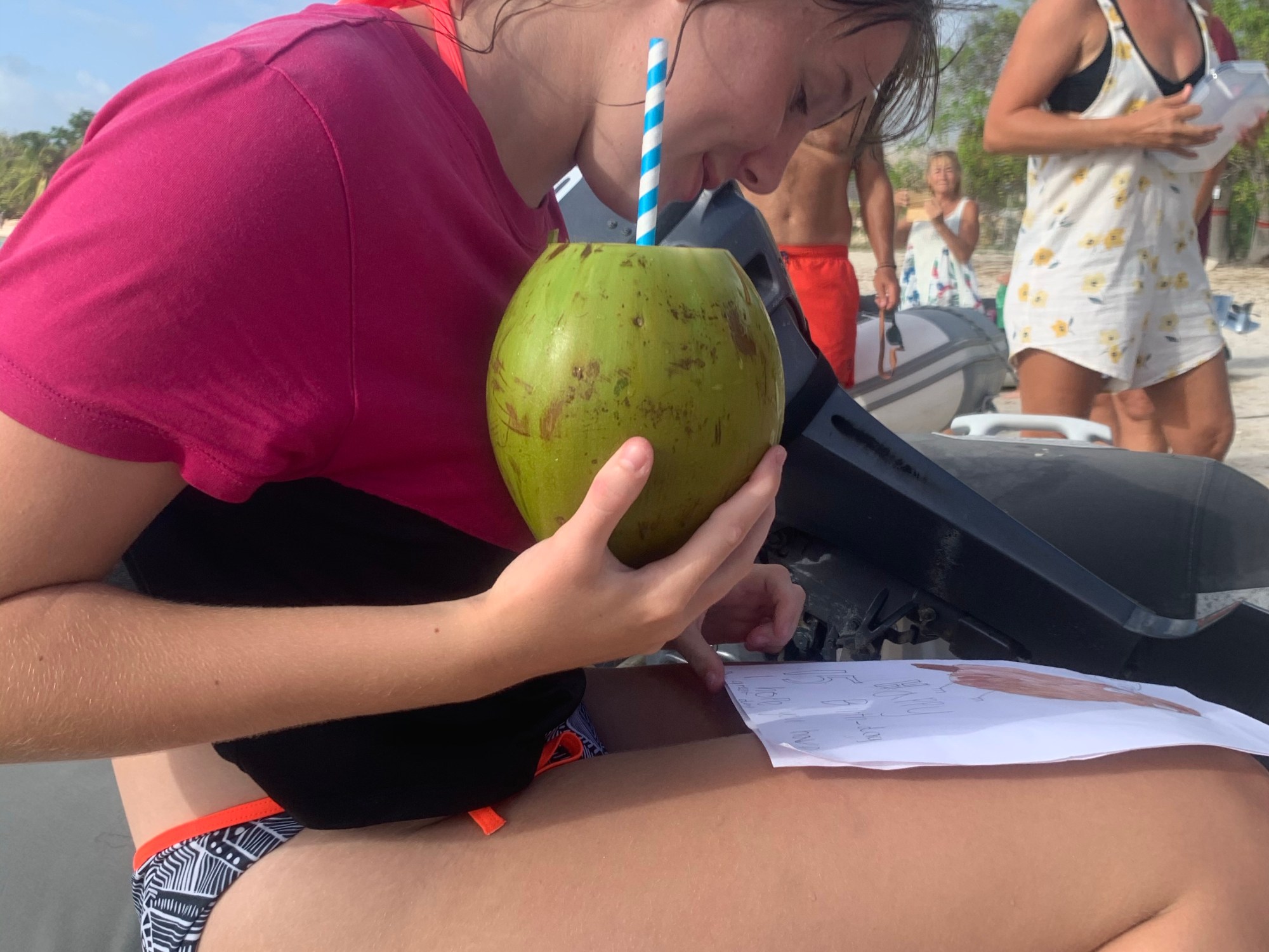 The Mob gifted Lu with a cold coconut. They cut the top off and gave her a straw. Our diving friend, Eaon came and gave Lu a voucher for a dive course: Understanding Hazardous Marine Creatures. Result! Shona, from White Arrow, came earlier in the day and helped Lu to dye her hair a semi-permanent brown. Lulu washed it off by jumping in the sea. She looked like a perturbed octopus. It was so cool.