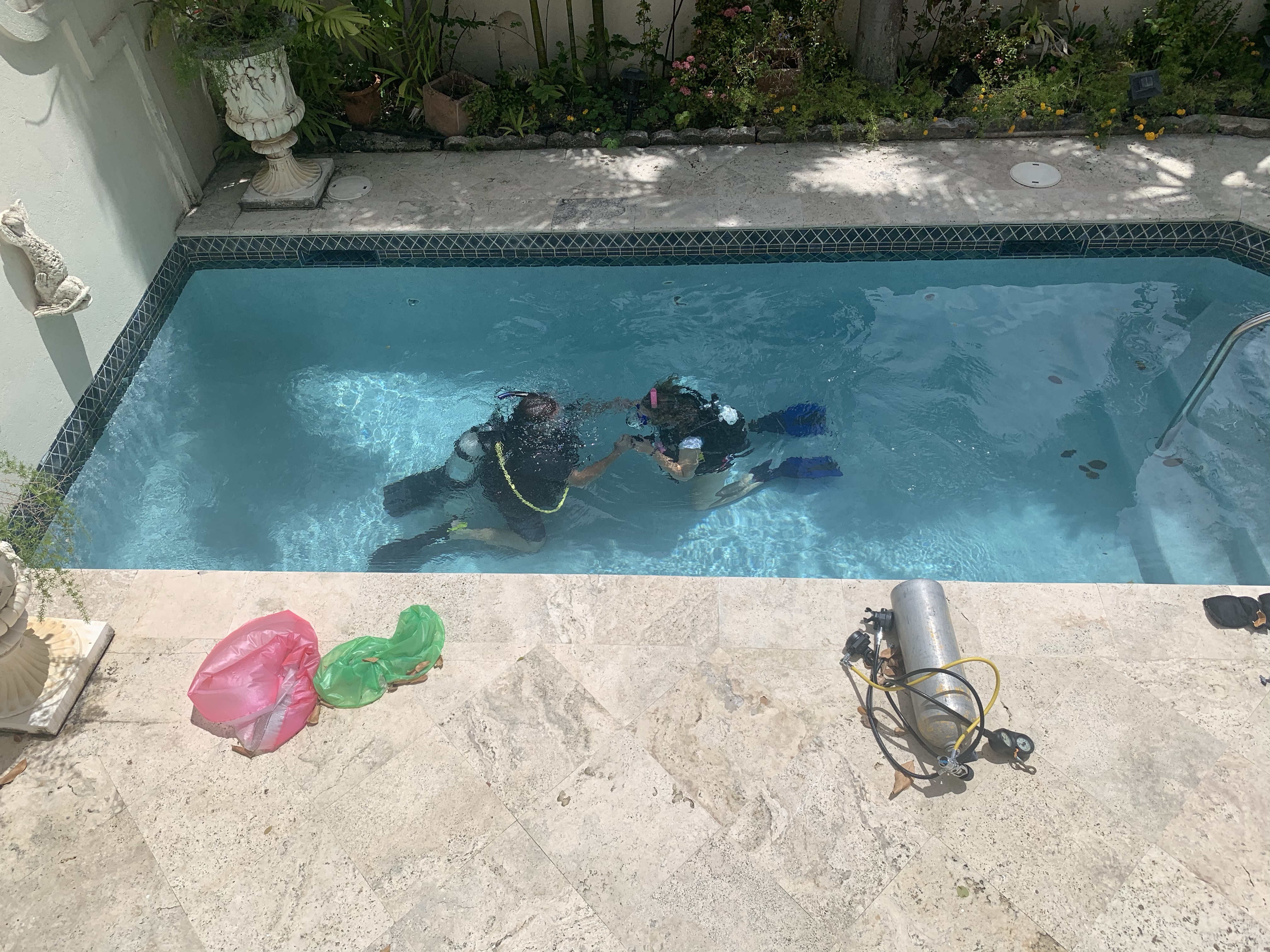 Not just that. It’s a house with a pool. This means it’s a place to have a pool party. Since Eaon runs a dive business – fixing and servicing dive gear, plus teaching the odd course, we see and speak to him quite regularly.