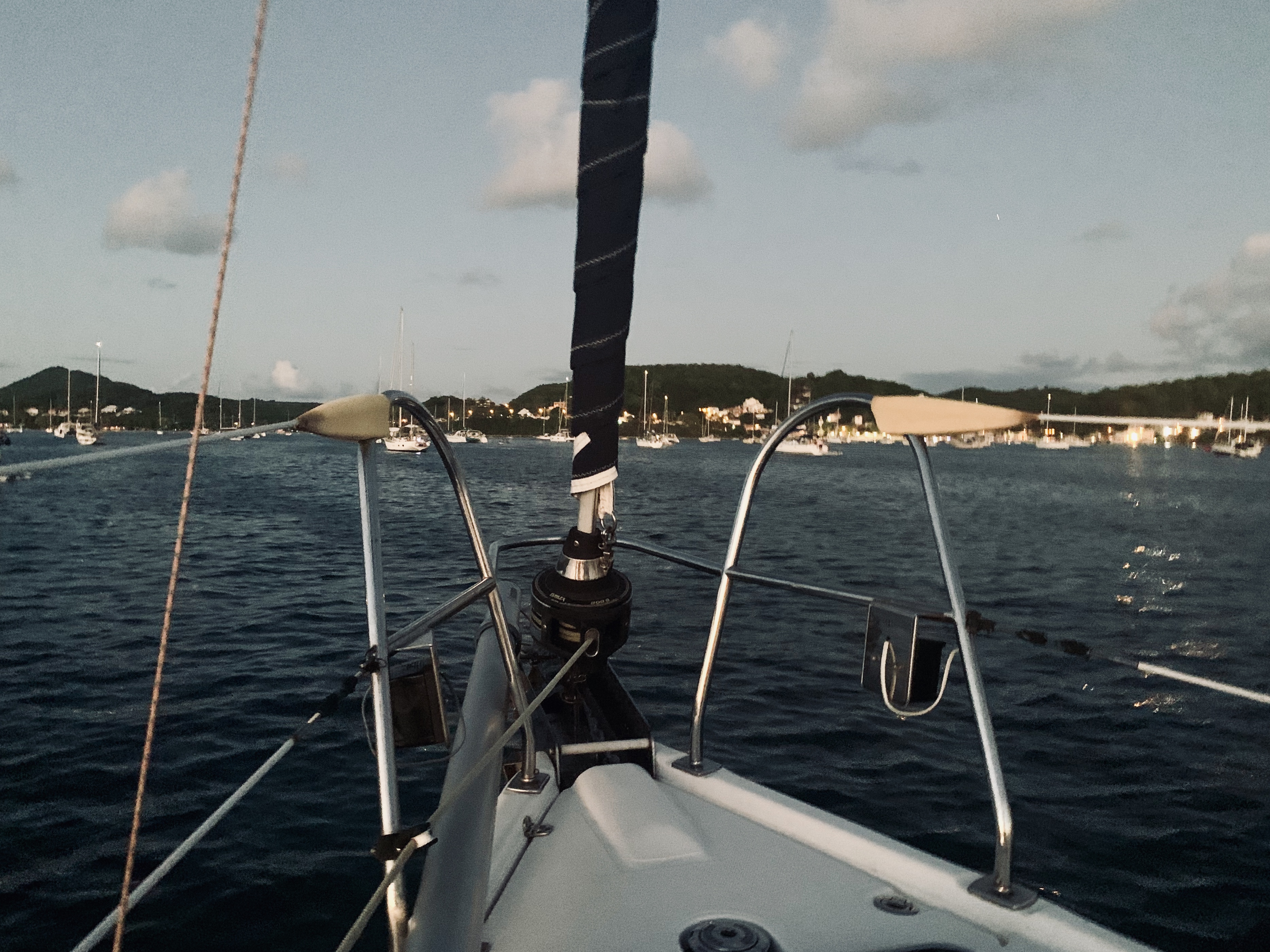 Tuesday evening. I’m sitting on Quest’s bow, facing the anchorage and waiting for the harp sounds. Of course, we could get in Edna and watch the concert from our dinghy, but to be honest, none of us are that organised. I’m hoping it will be one of the boats close to us instead.
