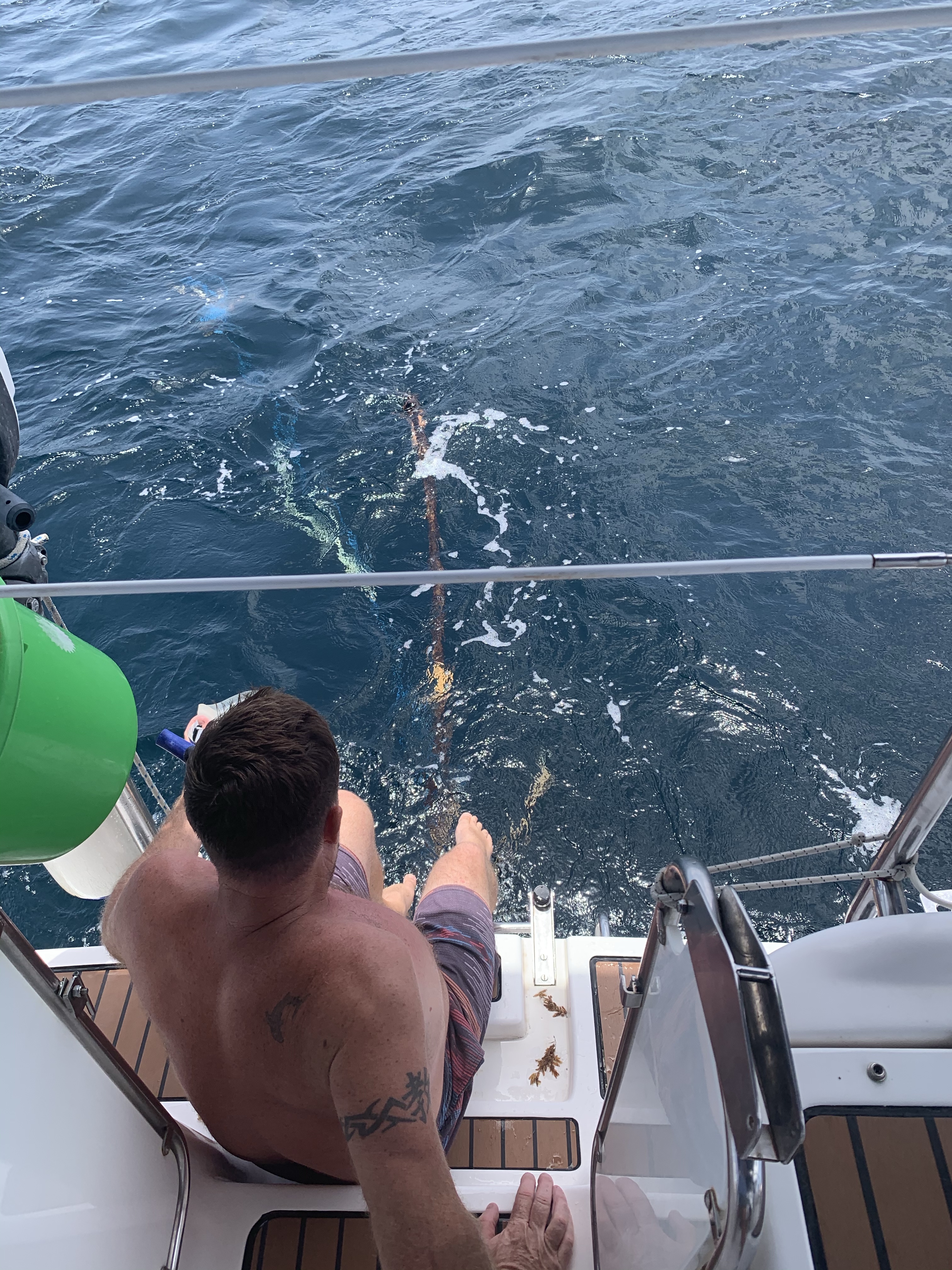 We could have picked it up going through a patch of sargassum. Sargassum is a big feature of the sea here – mostly large areas of floating orange-brown seaweed mats. For good, or bad, there’s been a massive increase of it in the tropical Atlantic. It often fills with debris too – like the stuff we picked up.