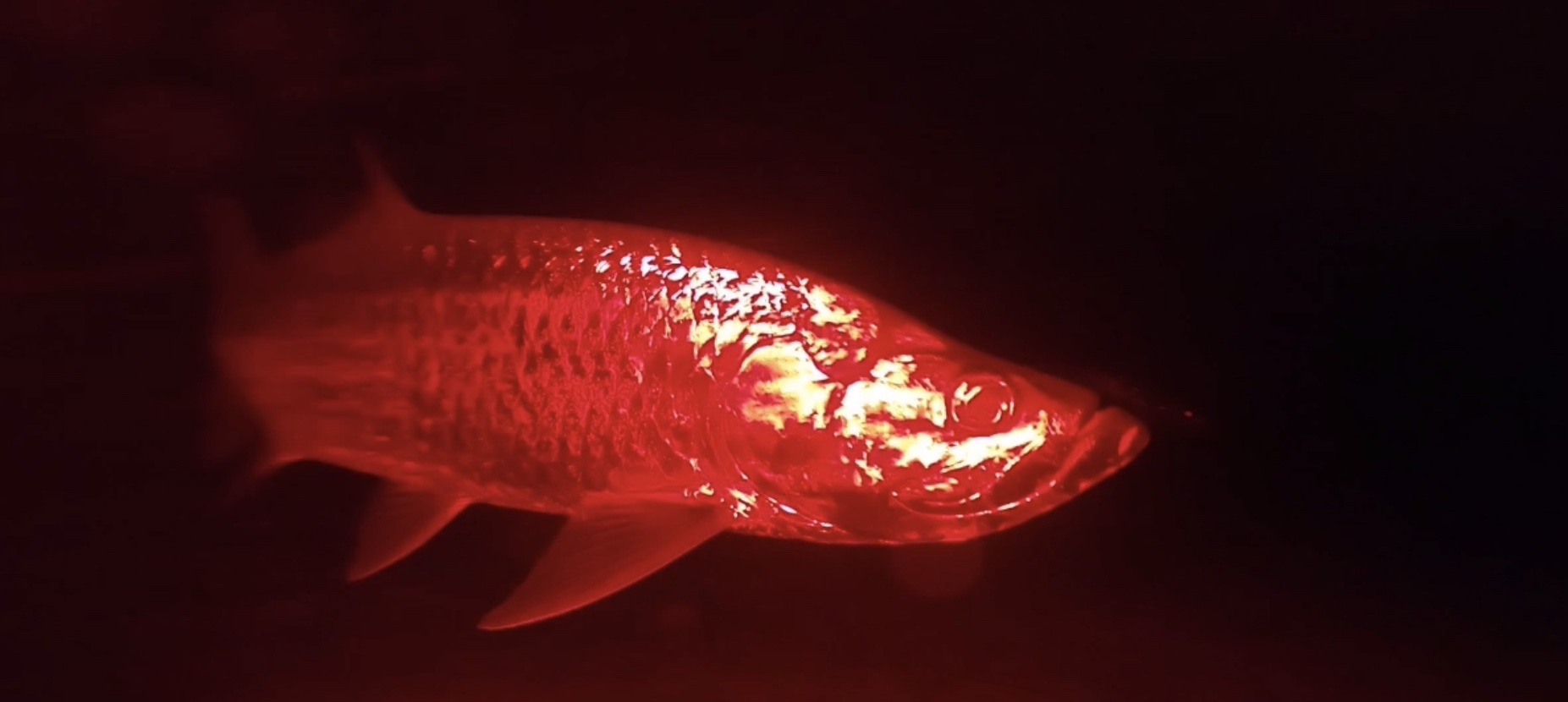 And the disco was for tarpons. Boy oh boy. These huge fish flanked us. As a side job, Lars had given me a bottle and tongs to fill with fireworm. The fireworm predate on the coral. Jack was supposed to shine the torch while I picked them up. Lovely things – they drop their bristles when you touch them. The bristles make your skin itchy and sore.