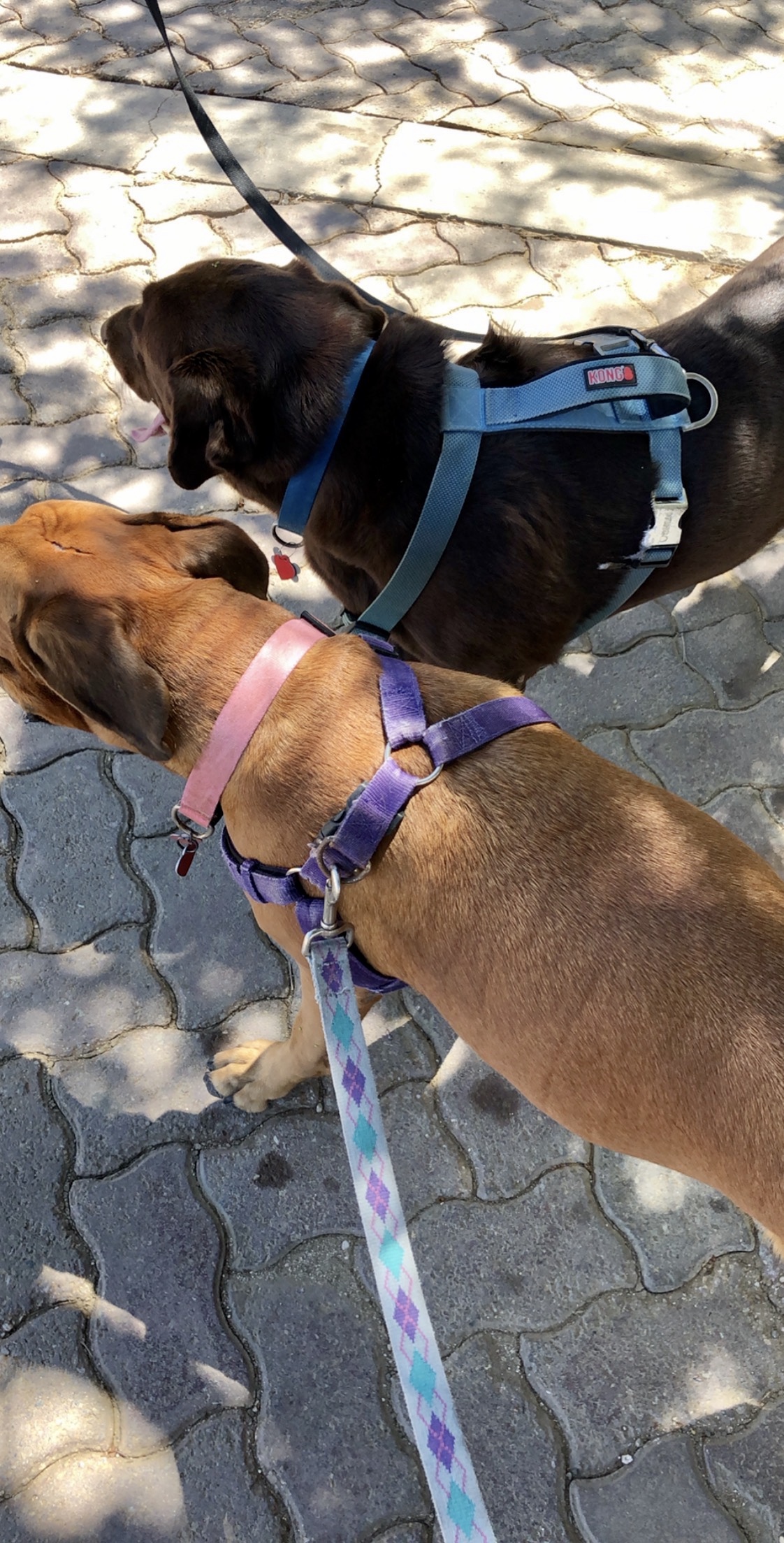 We’ve been walking our neighbour’s dogs. This is while the boat is still in quarantine. The dogs though are clear. It’s got to the point where, when the dogs see us on the opposite pontoon, they begin to whine. They want to go out and smell the neighbourhood. Ok, ok, dogs! We’re coming!