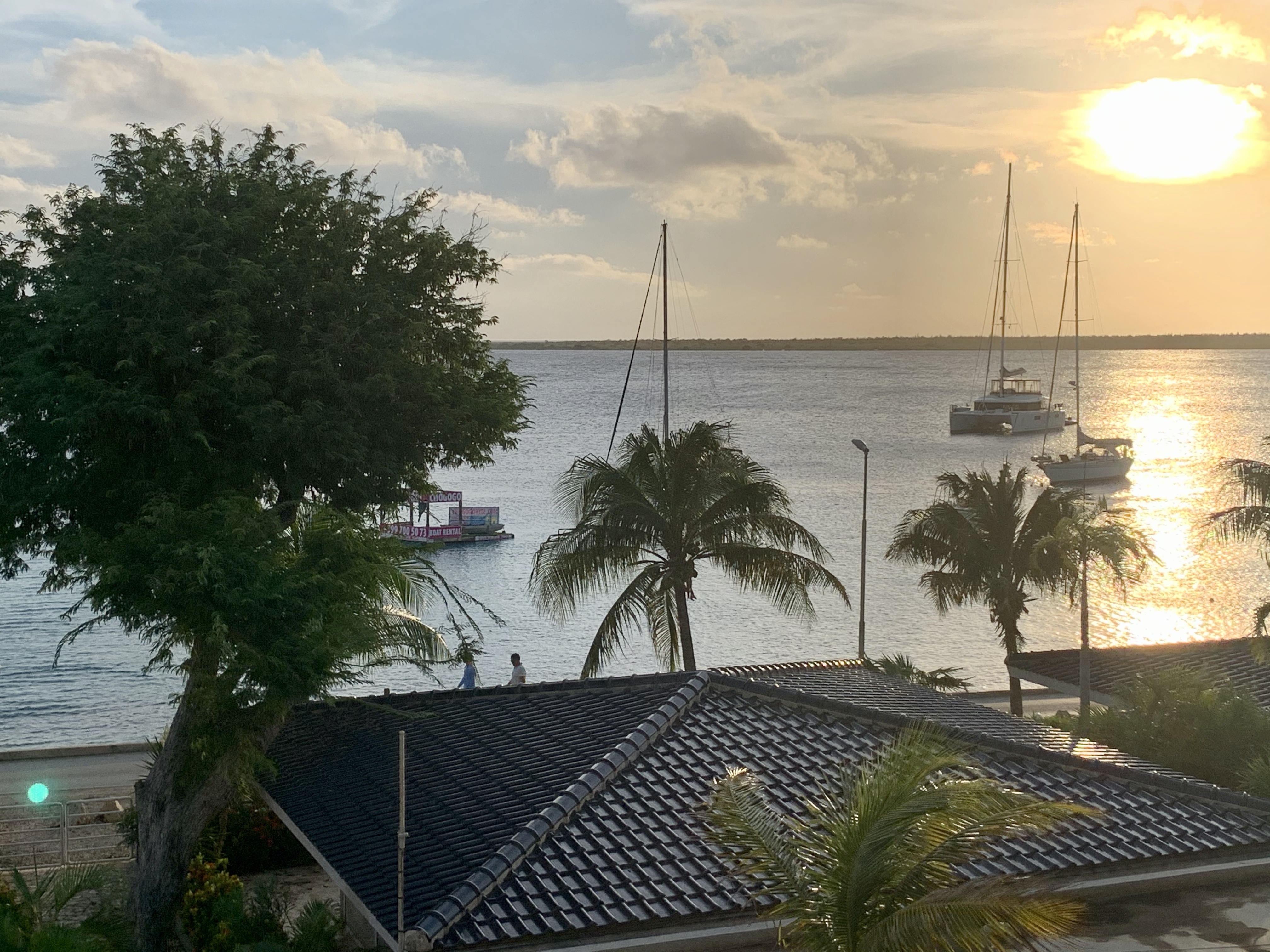 The next morning I went for my morning jog. It was a different world. I found a normal Bonairean scene of calm sunshine on the prom. The only things hinting to the previous night’s storm was a couple of broken fenders in the surf line, an empty boat dock which all the boats must have abandoned in the sudden swell – and a few splashy puddles. Huh, I thought. That’s geography for you. No wonder the teachers get so emotional.