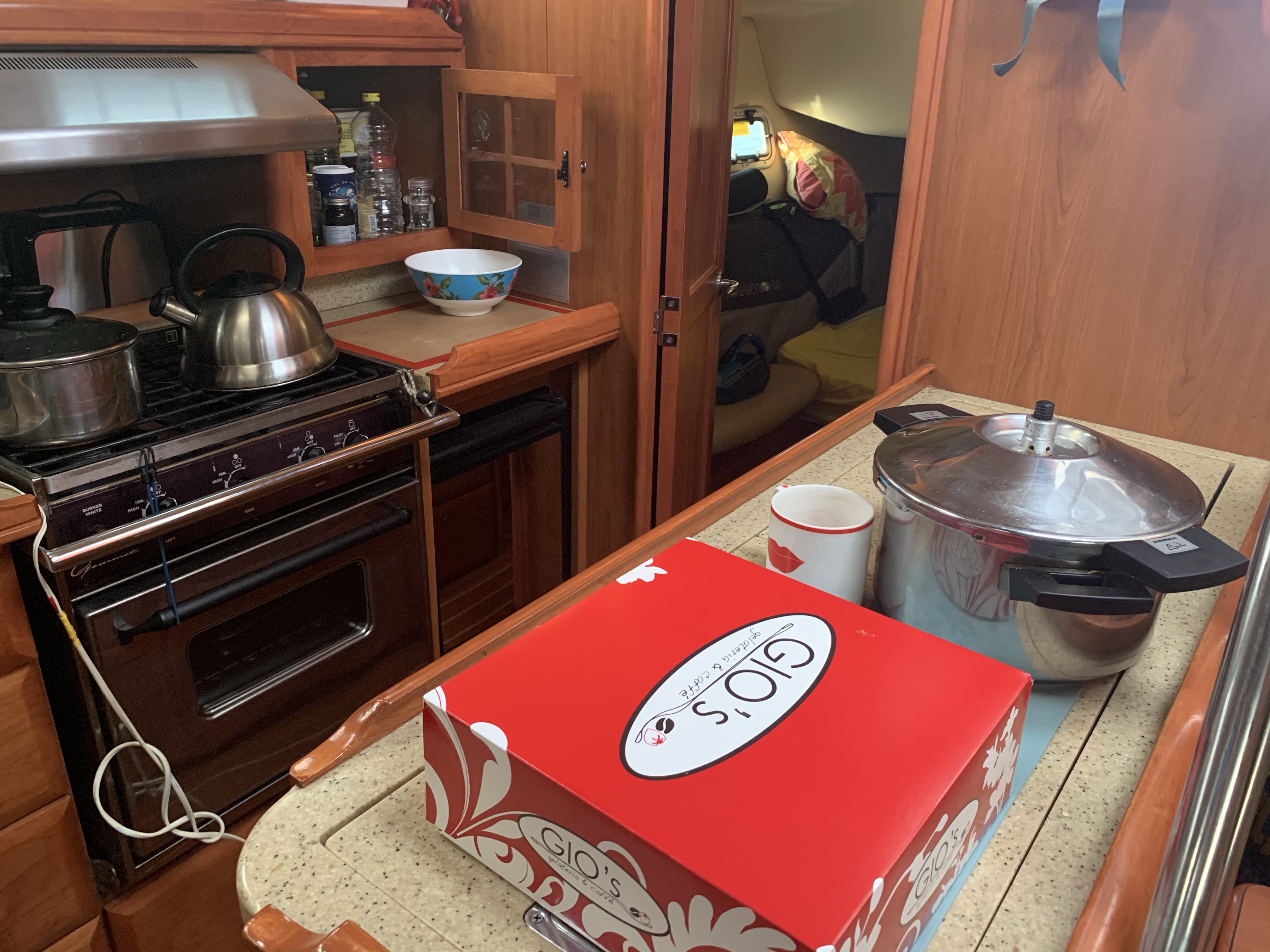 Patrice and his son, Jean and Jean’s girlfriend, Morgane, were coming for dinner. We’d told them about our pressure cooker – Patrice doesn’t have one onboard. For the purposes of living onboard, a pressure cooker is a great thing. Saves gas, makes food quickly while retaining all the juices. We couldn’t live on Quest without one. Of course, Patrice knows about pressure cookers. Apparently, they were invented in France. Let me just Google and check.