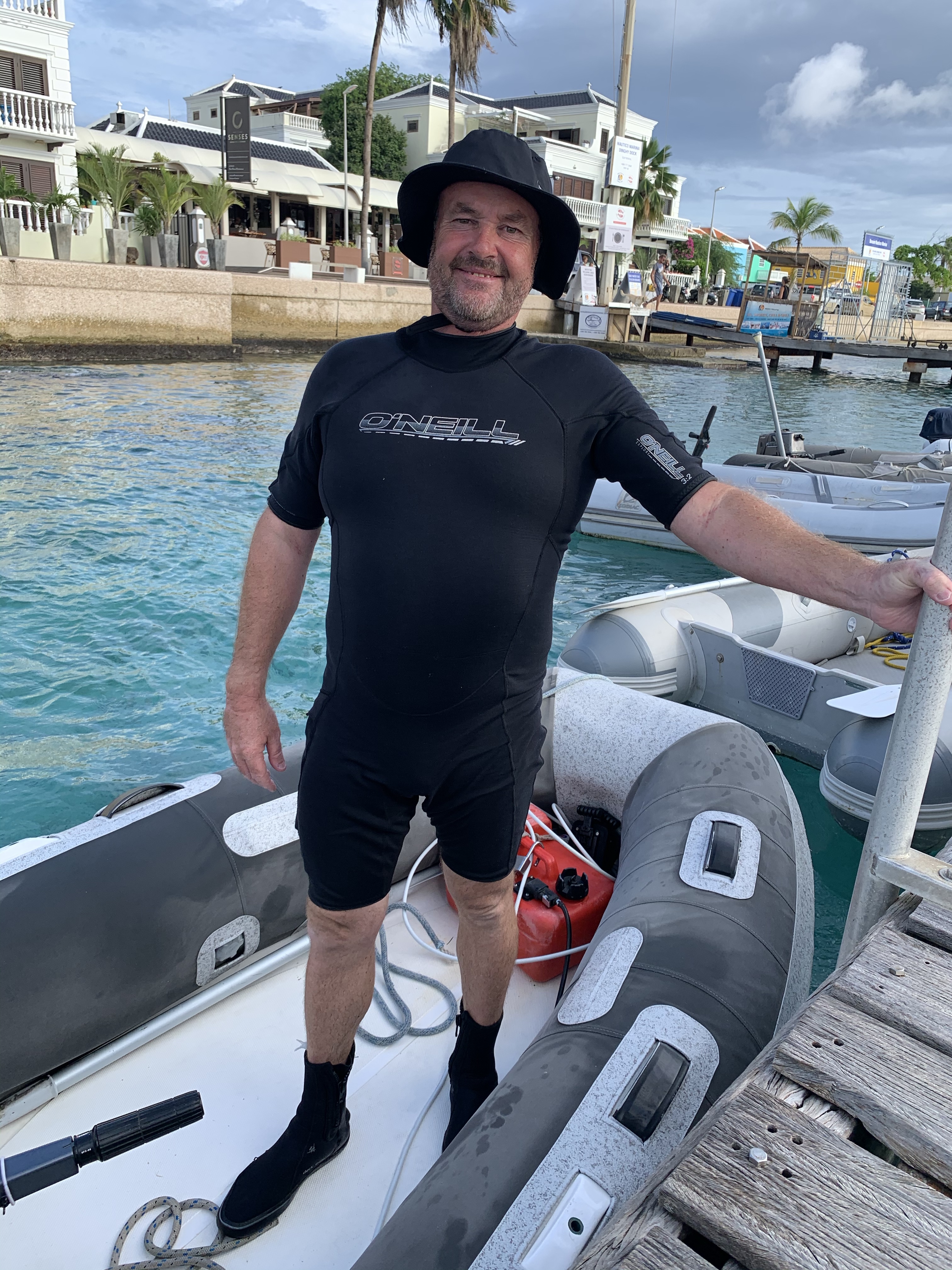 The photo is somewhat misleading to the title: Ladies Lunch. It was just the best photo I got all afternoon – Jack coming to pick me up at Bonaire’s town dock.