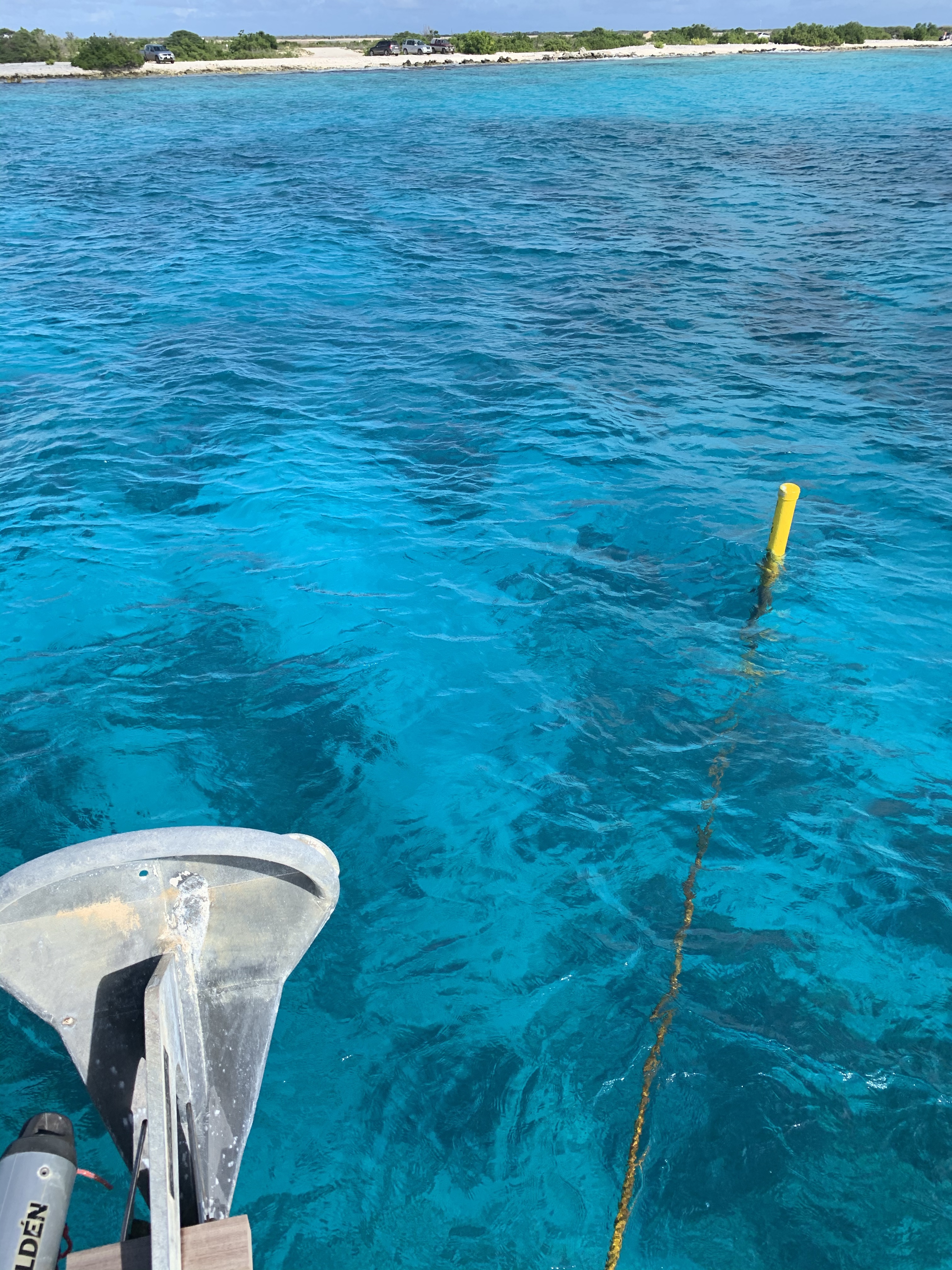 We sailed home the long way in the afternoon; around the little island, Klein Bonaire, adjacent to Bonaire. We were following Patrice, who’d come to dive the adjacent mooring. By the time he shot past us in Astra, his Southerly 49, he was starting to lean over as though he was in a regatta. We had to pinch the wind in order to sail back. It was a pleasure with all that flat water in the lee of Bonaire.