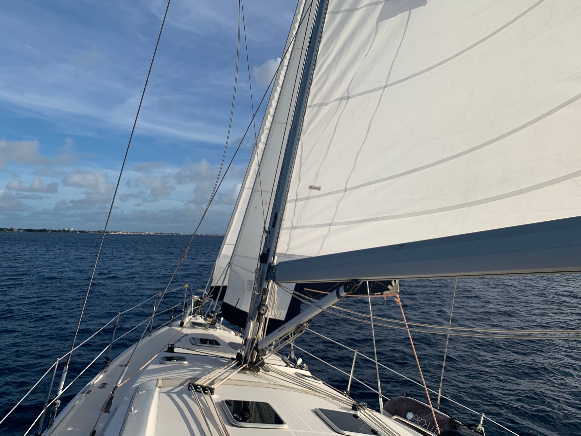 We sailed home the long way in the afternoon; around the little island, Klein Bonaire, adjacent to Bonaire. We were following Patrice, who’d come to dive the adjacent mooring. By the time he shot past us in Astra, his Southerly 49, he was starting to lean over as though he was in a regatta. We had to pinch the wind in order to sail back. It was a pleasure with all that flat water in the lee of Bonaire.