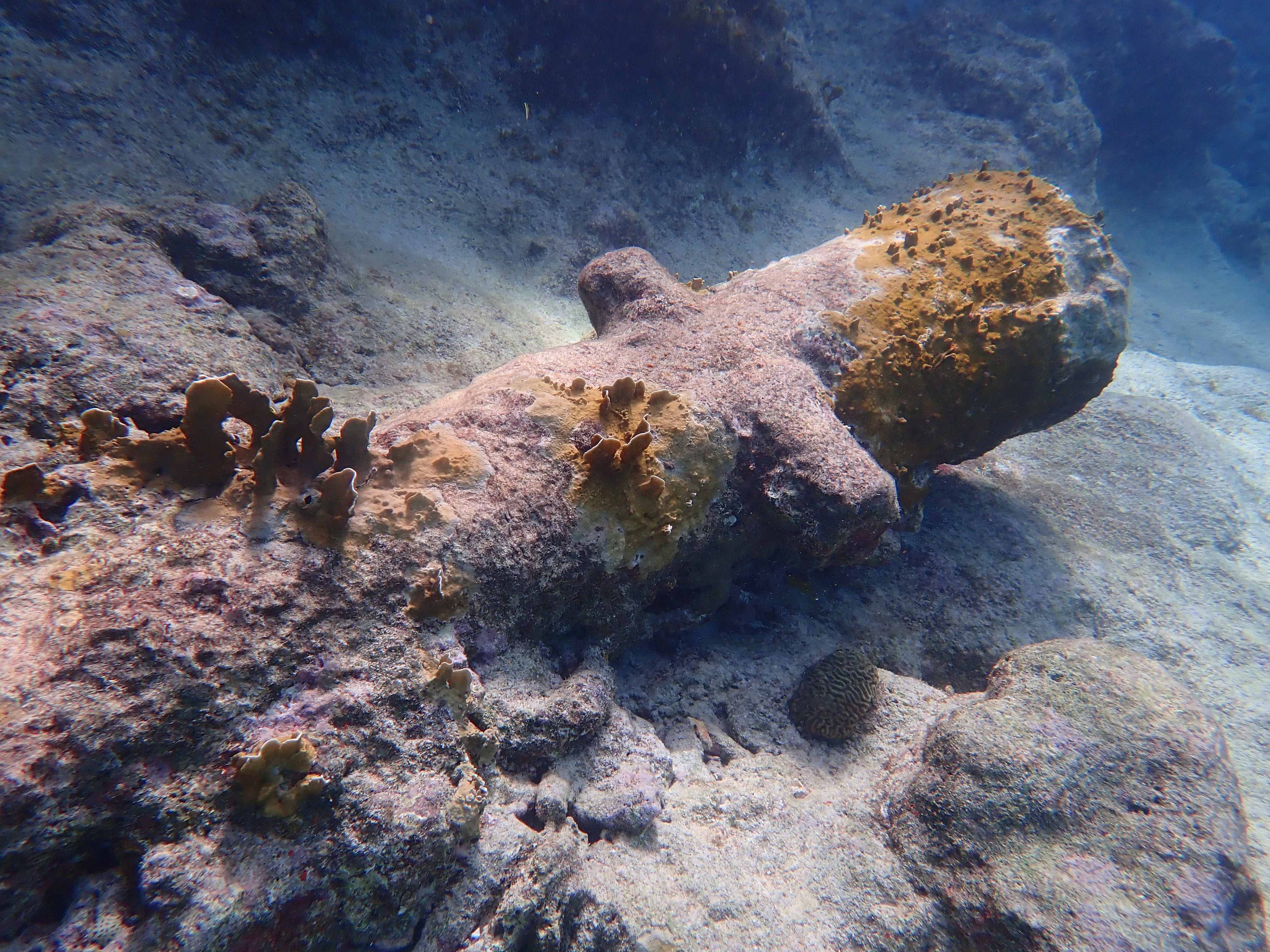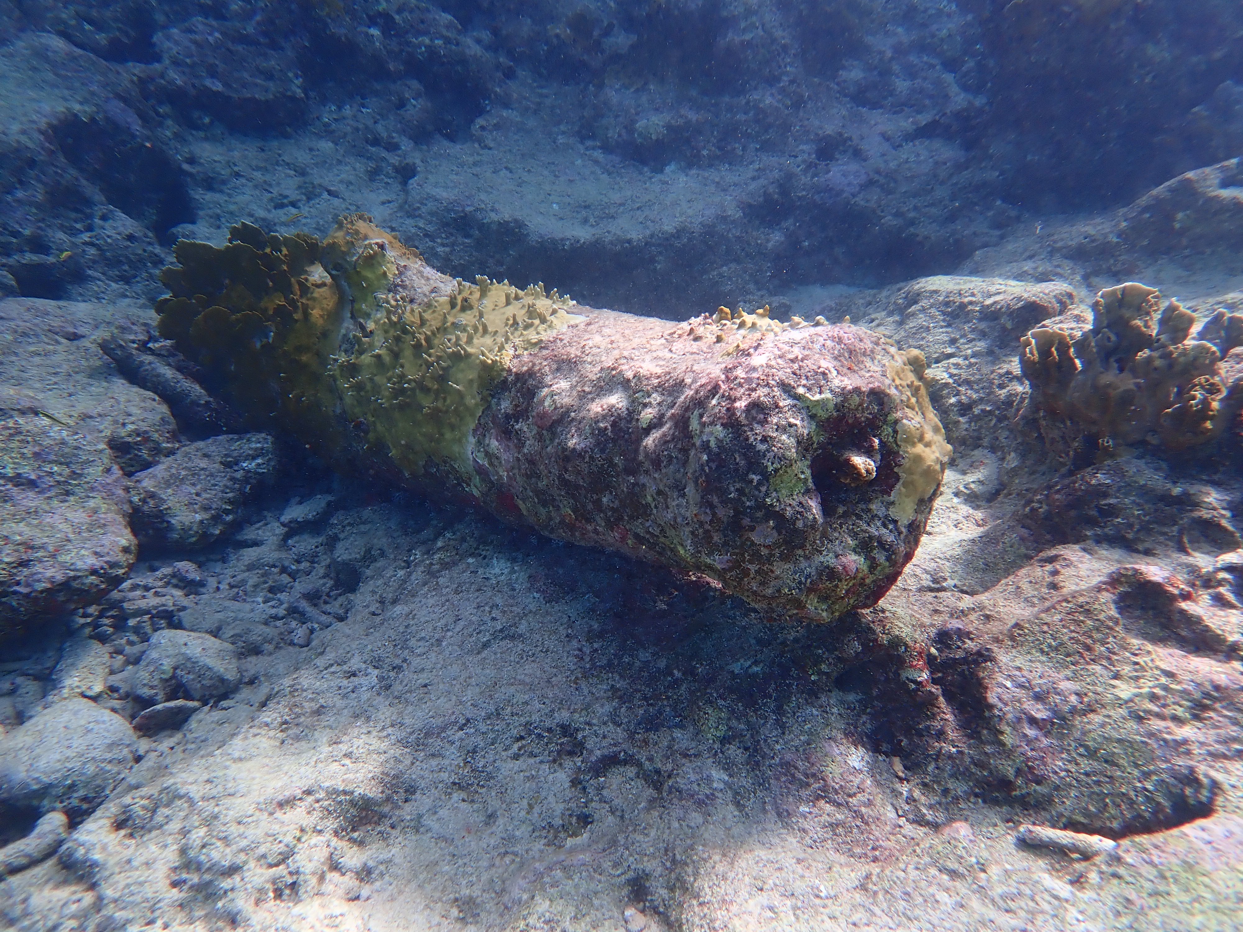 I was glad Patrice had pushed us out of the mooring field today. Quest and Astra had taken two yellow dive buoys next to each other. It was the clearest, sandiest bay. We ate some lunch and snorkelled around. It reminded us of the BVIs, but without the other boats. Or any people. We even found two encrusted cannons in a few metres of water, by the side of the cliff. Slaggy cannons. For sure.