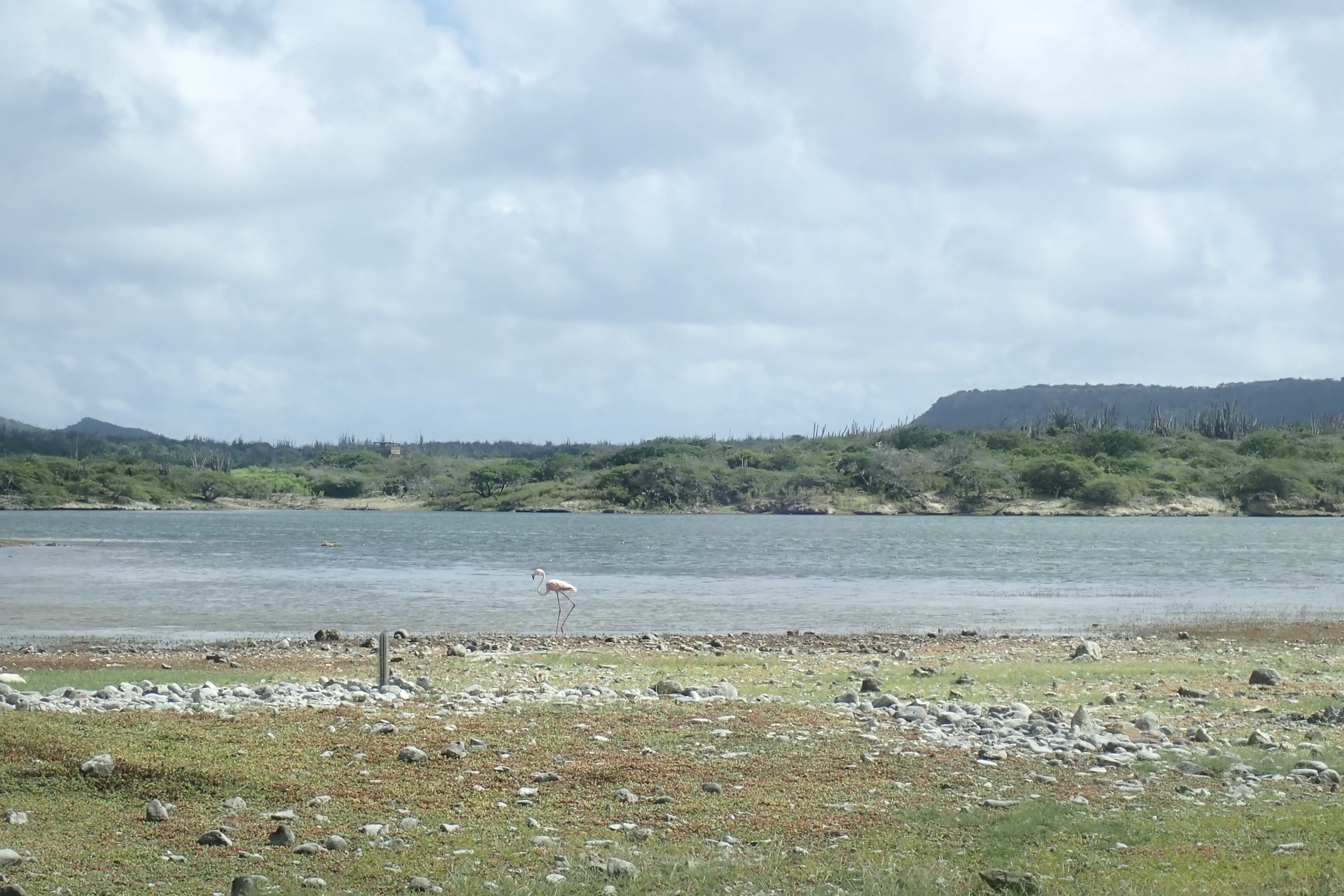 The goat bones from the plantation were shipped straight to Suriname to make buttons. We read the information board about Boka Slagbaai when we swam to the beach. This place is one of the highlights of the national park. A little coral beach and mountains of cactus scrub land with a few renovated plantation buildings, picnic tables and a car park. Behind us, a brown lagoon stretched into the park. We could see one lonely flamingo mooching around, bending it’s enormous ankle-knees.