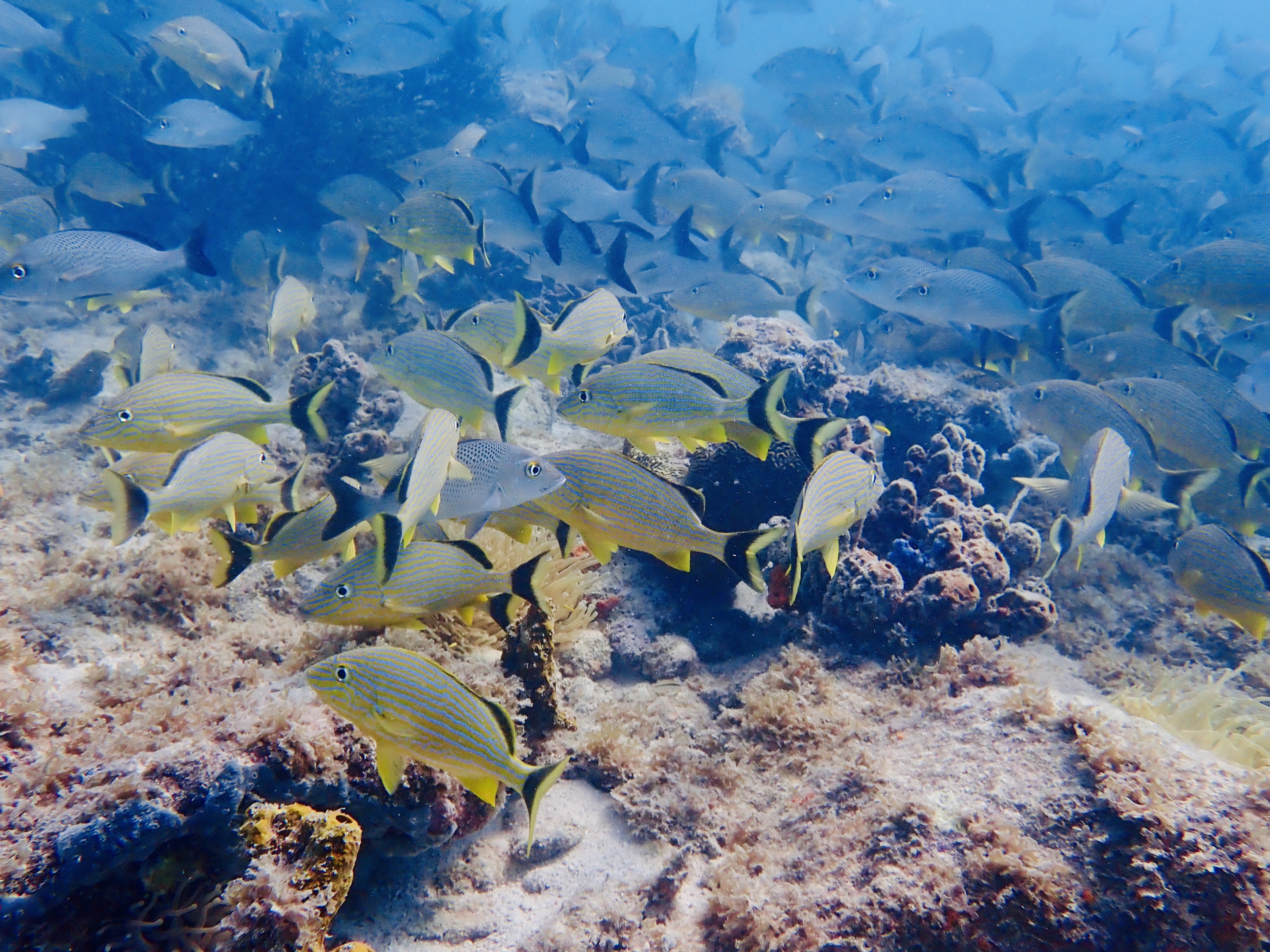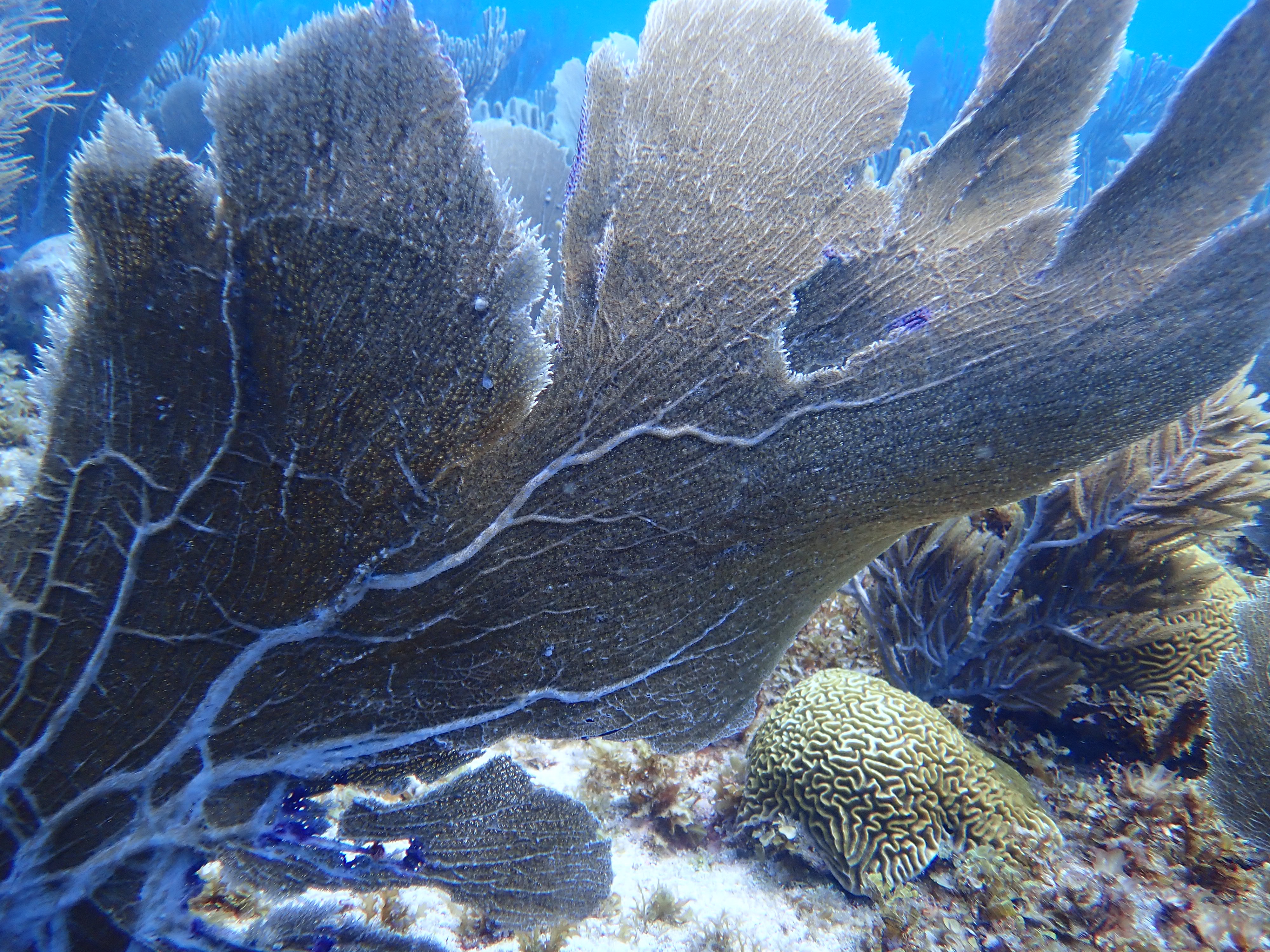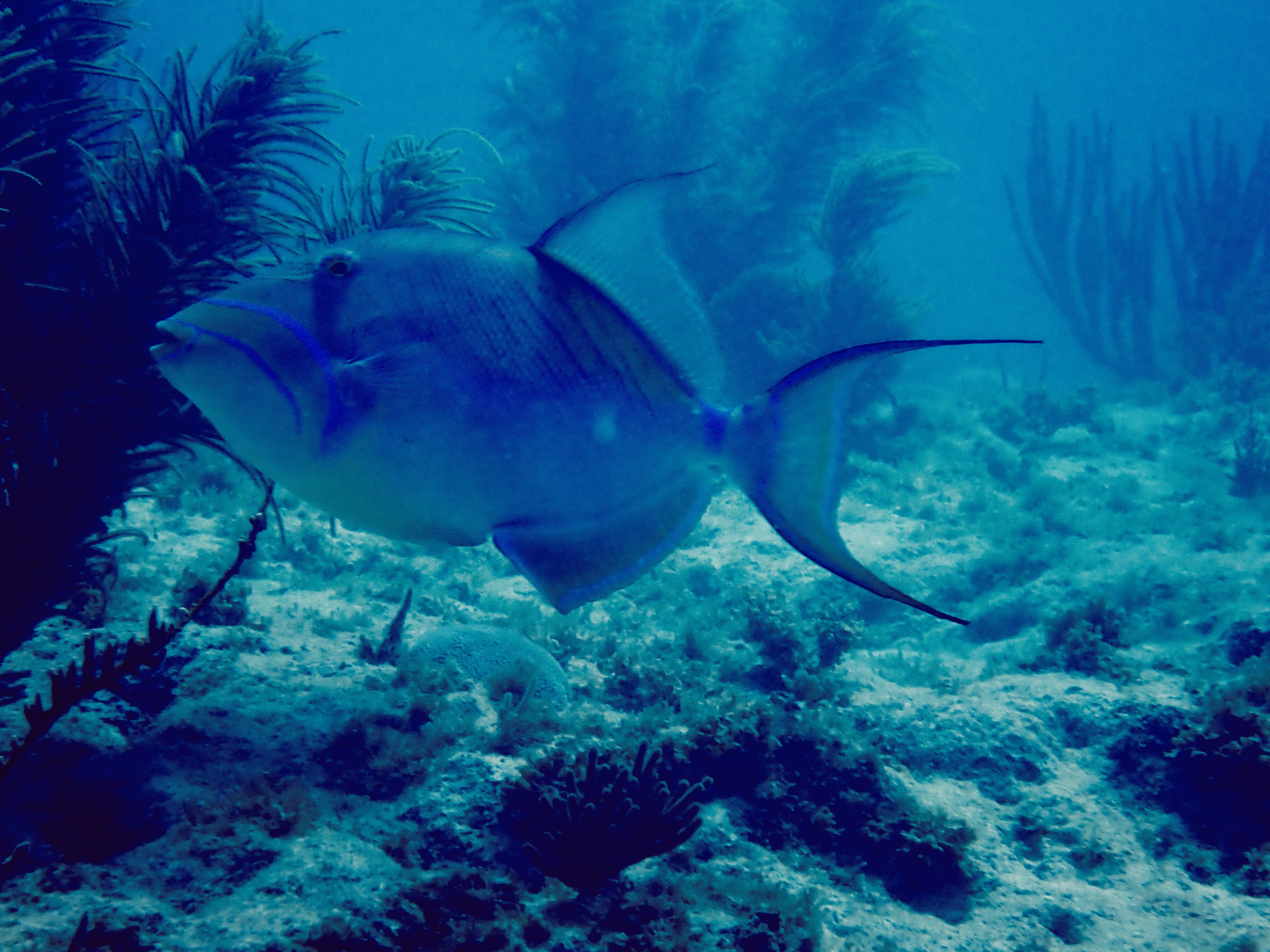 On our whopping 104 minute dive (in the end my dive computer gave up) Bas took us through different underwater habitats. This was Lu’s favourite part. A plateau of sea fans. A reef wall, coral outcrops. We saw schools of snappers, queen triggerfish, one of the most beautiful fish in the Caribbean, huge groupers, a whole wall of actual tarpon. Patrice said his favourite was the tarpon wall. They did sneak up on you. You’re swimming along, you look up and there’s a hundred.