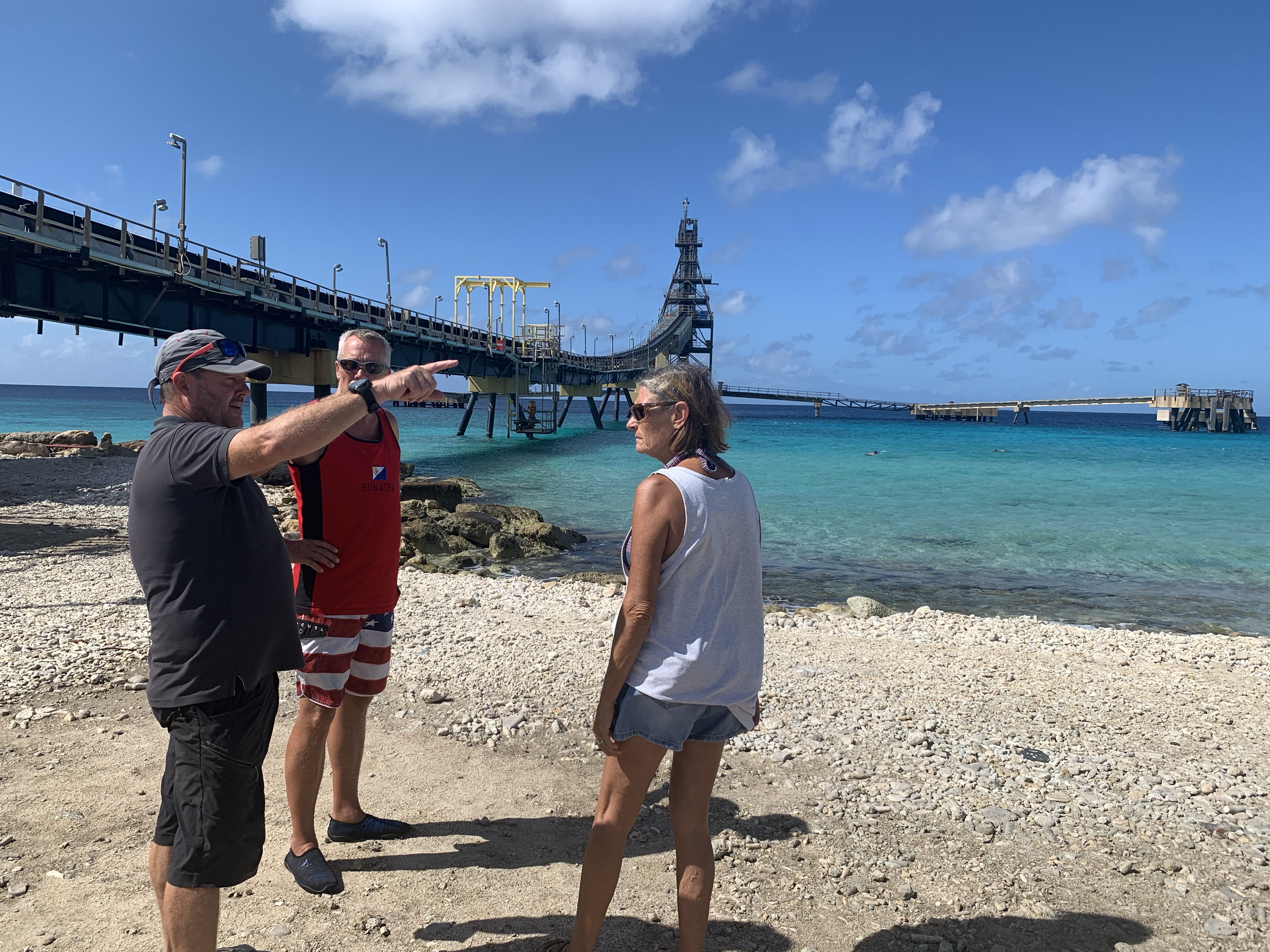 On Salt Pier yesterday, there was no ship. Only a bunch of snorkelers and divers – more than we’ve seen clustered in one spot in Bonaire. Not the ‘place to ourselves’ routine we’ve been enjoying, but it was cool. The Salt Pier is large and there was more than enough room for everyone.