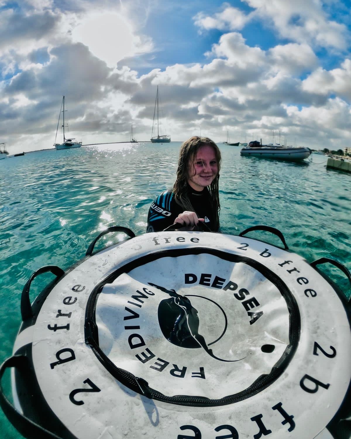 To test her, Hugo the instructor swam over to Quest at 4pm on Friday with his large surface buoy. They went then and did the static apnea (fancy name for holding your breath) by the shore.