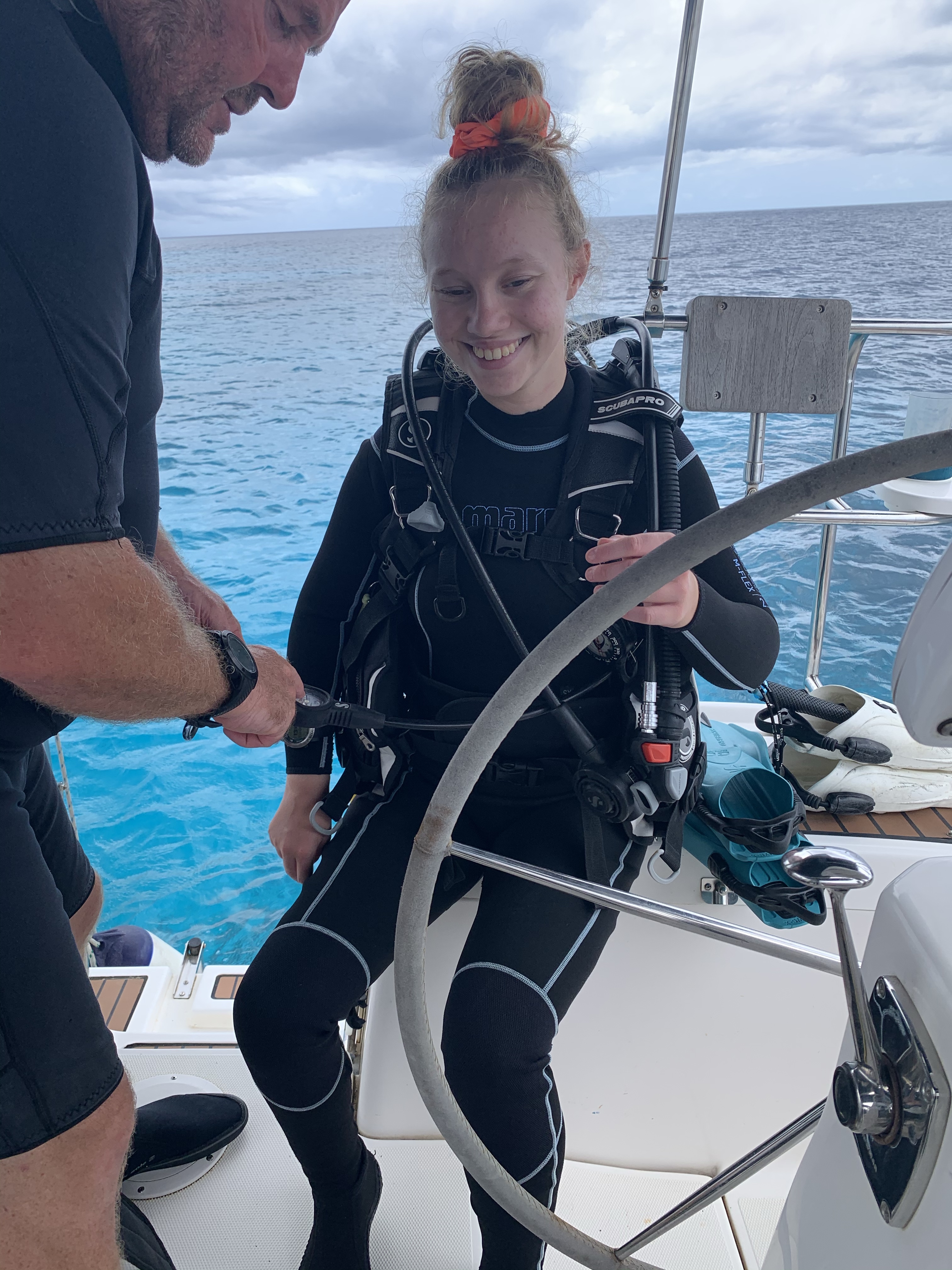 There was just enough turquoise as we approached the shores of Klein. Shall we dive, we thought? All the dive gear was packed away below – but we did have the place to ourselves and time to spare. Before we knew it, we gravitated to a yellow dive buoy. Made a human chain with the gear.
