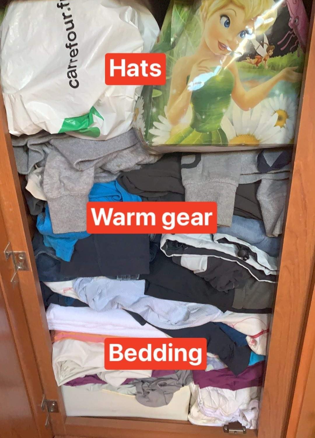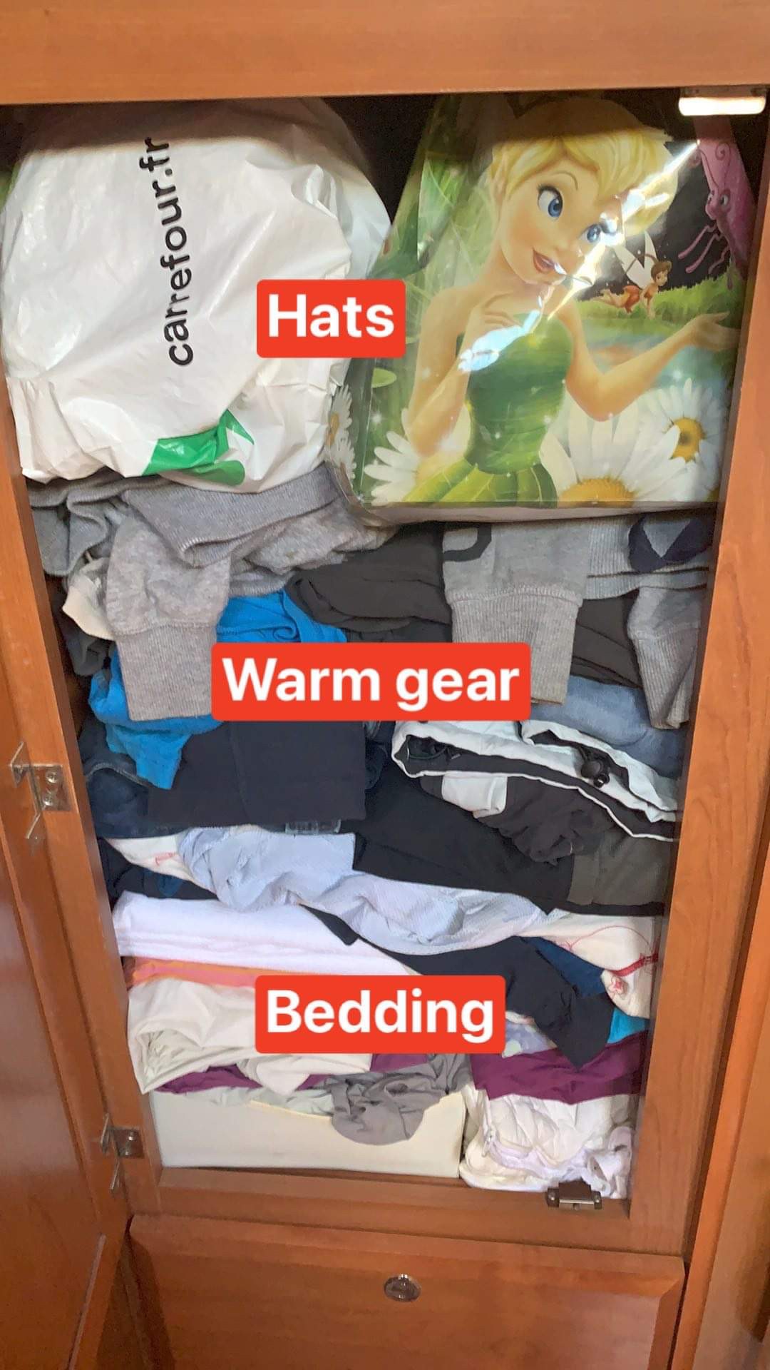 I moved the decorations to the same cupboard as one of Quest’s three air-conditioning units. This one is under Lu’s bed. Moulded the Christmas tree onto an empty corner and stacked the decorations around the air-con pipes. The life jackets all need a good wipe. We still have Fin’s yellow doggy life jacket too. Hmm. My fingers twitched examining it. No, don’t throw. We’ll keep it for when we get home.
